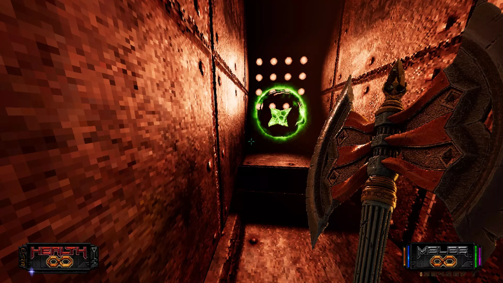 秘密8 在地图接近末尾处有一个暗红色房间;走到一面墙的尽头并抬头看,你会发现一个可射击的开关,之后会打开一条秘密通道。如果你是自己找到这个秘密的,那就自我表扬一下吧。