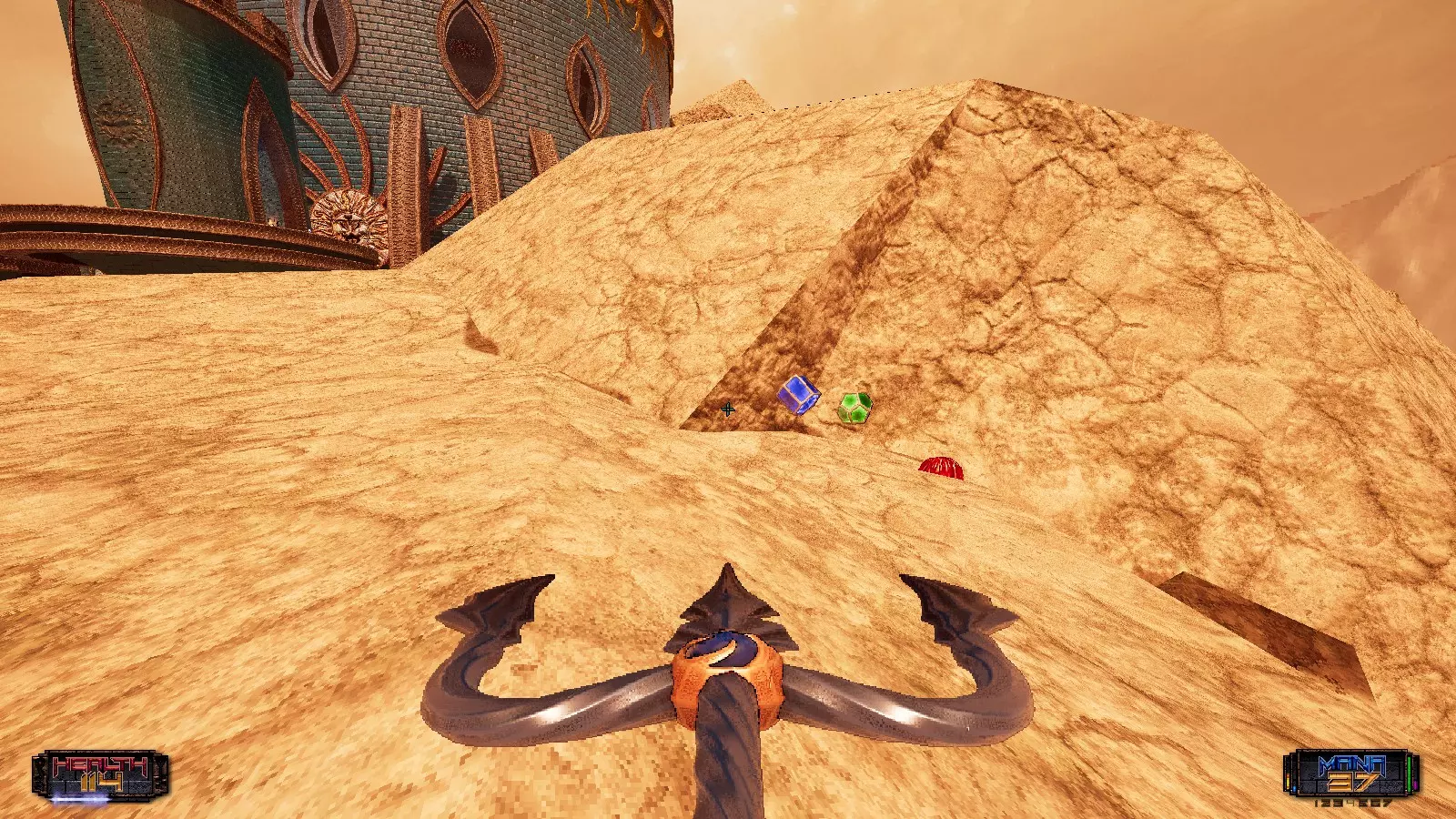 第三章 地图1 学徒之路 共7个秘密可供发现 秘密1:走进准星所标记的墙壁,墙壁就会打开。从那时起,我就开始执着于去触碰每一面带有红色和橙色标记的墙壁。