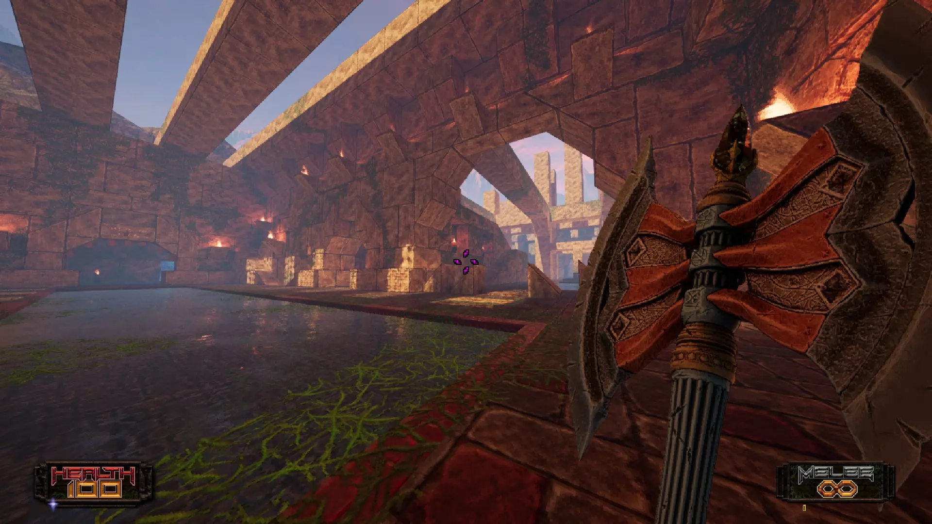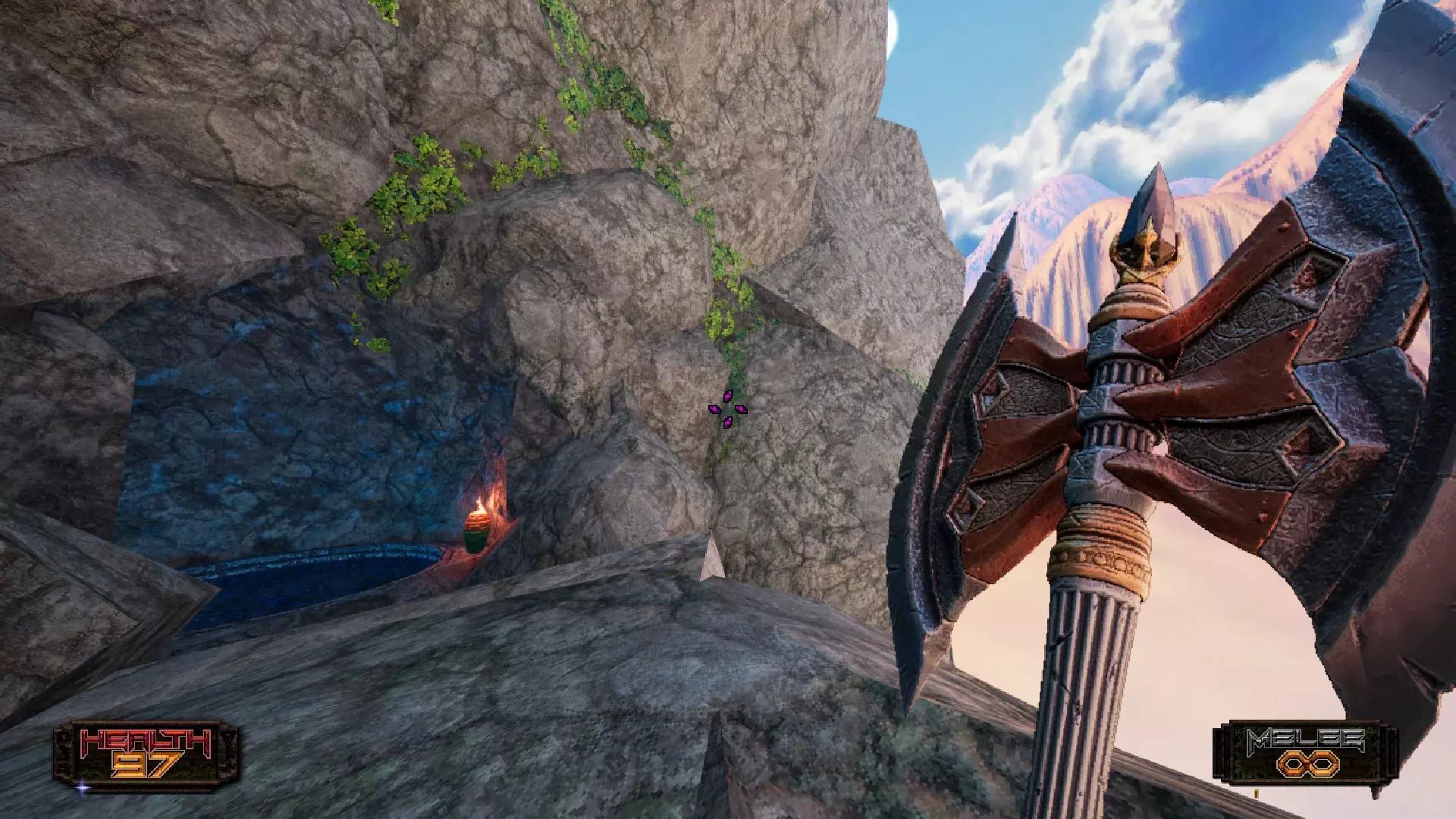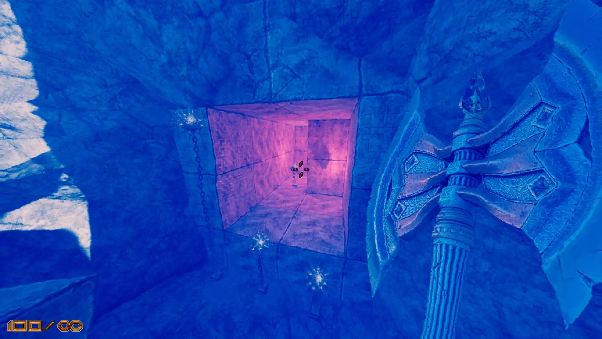 现在这前半部分相当简单。关卡是线性的,没有什么隐藏内容(至少我没发现),所以流程很直接。你会失去所有武器,只能使用斧头。一开始你需要游泳。游到前方区域,右边会有一个有红光的洞口,还有一些地雷。游进去的时候要避开地雷!你不能损失任何生命值!后面会有更多说明,必要的话可以快速存档,但这部分的躲避还是相当容易的。通过后你会离开水面,需要爬上一面墙。很简单,只要别跳进熔岩里就行。