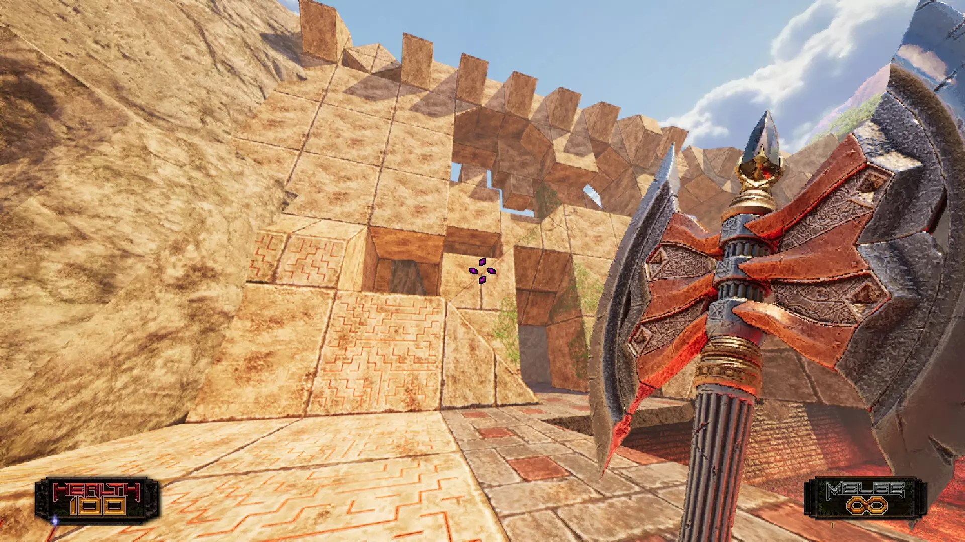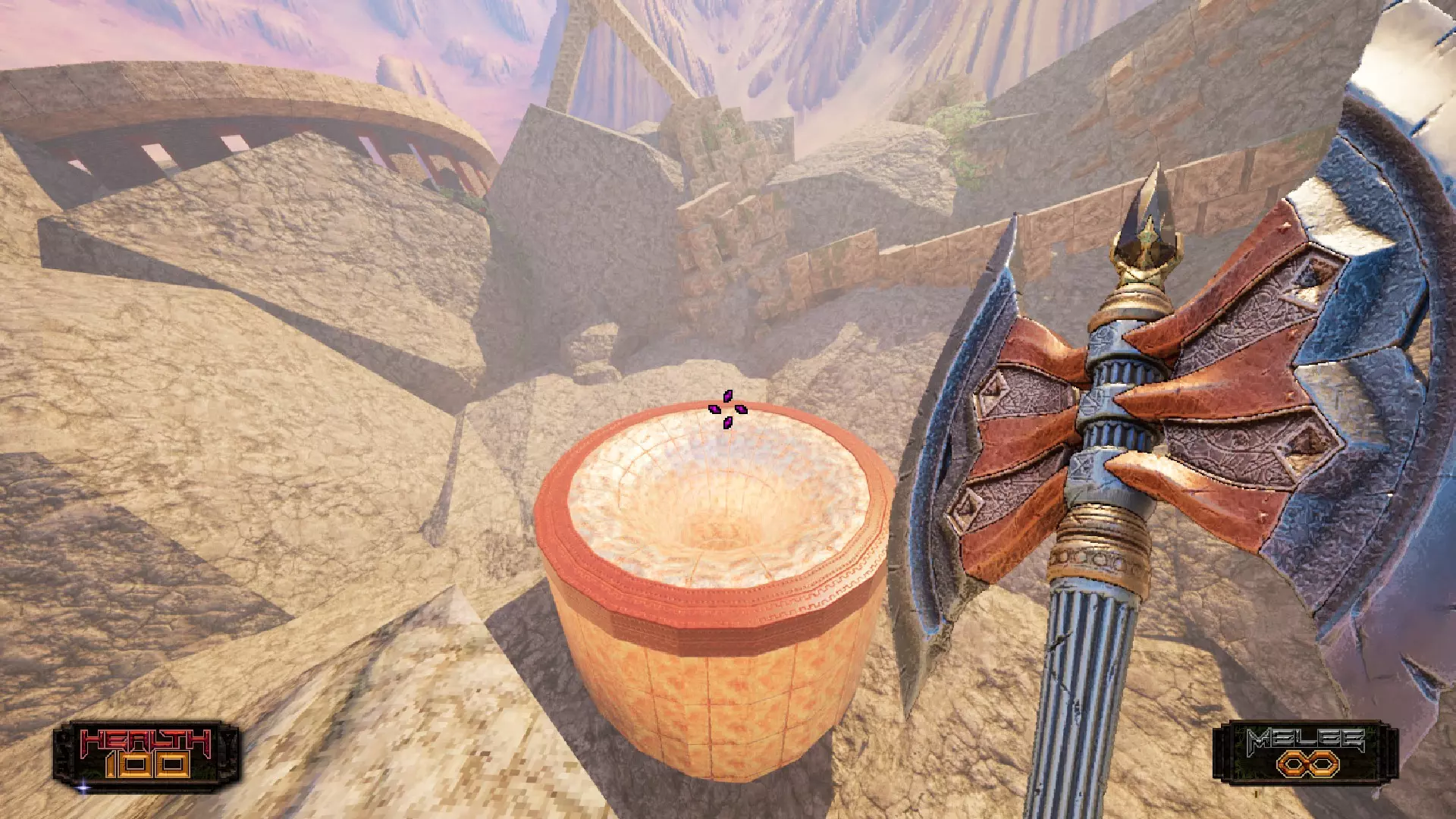 接下来你会遇到一些火球发射器陷阱。这些陷阱很容易躲避,只需等待它们发射,然后逐个移动即可。记住要避免被击中,你可承受不起生命值的损失!穿过火球区域后,你需要跳下去,跑进这个有圆柱形建筑的峡谷区域,向右跑,那里有一条通往 ledge 的小路,你可以从那里跳进去。