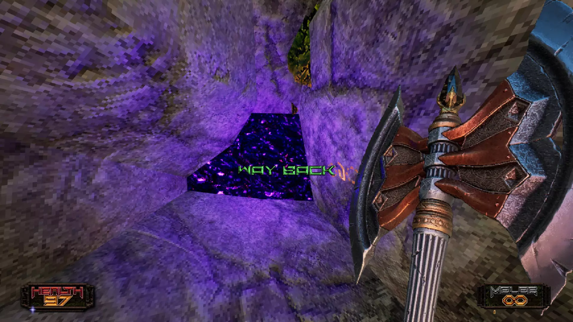 你现在将被传送到一个新区域。不用担心坠落,你会被传送回这里且不会受到伤害。我们就快到了!沿着小路向上走,直到你看到这个开口。你需要走的路在水里,需要继续游泳。 额外提示:这个开口的右侧有一个传送门(你可以看到岩石上有紫色光芒),这个传送门会把你带回峡谷区域。我实在看不出它有什么用处。
