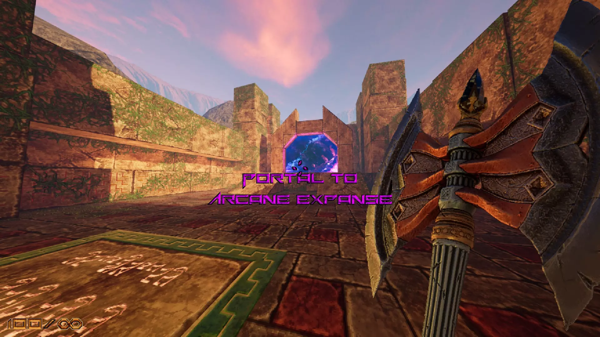 从柱子上有文字的水池出发,向右跑到角落,那里有【奥术领域传送门】。跑过去,查看它的后面!