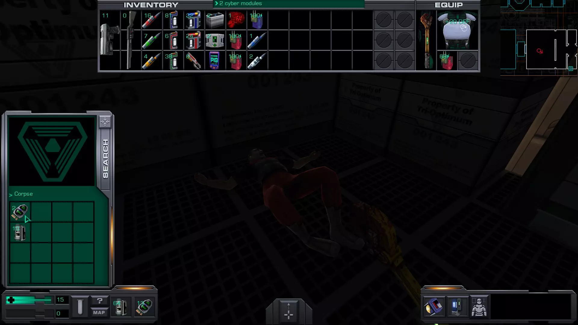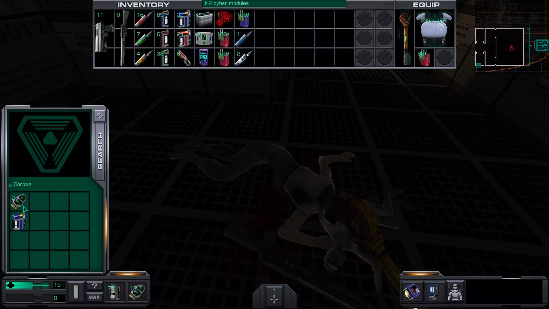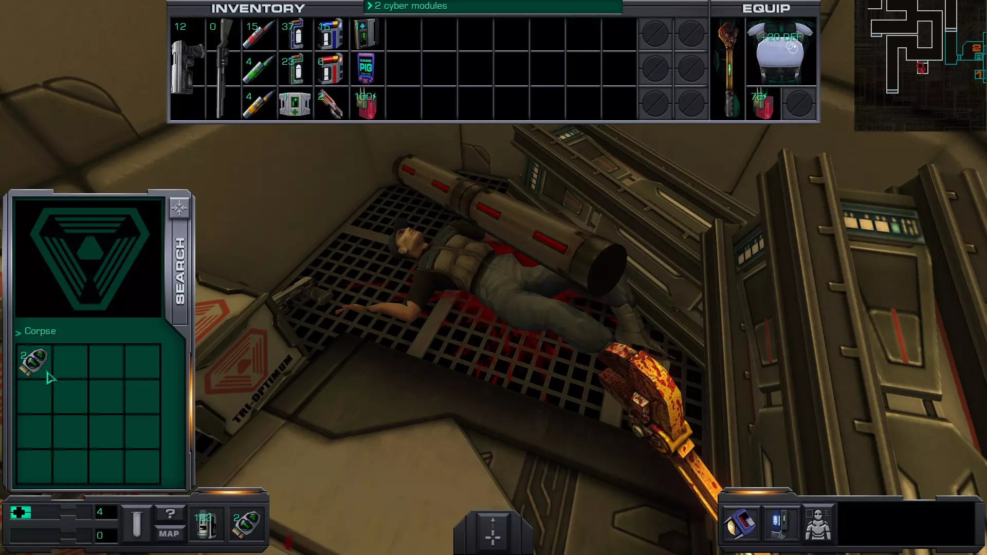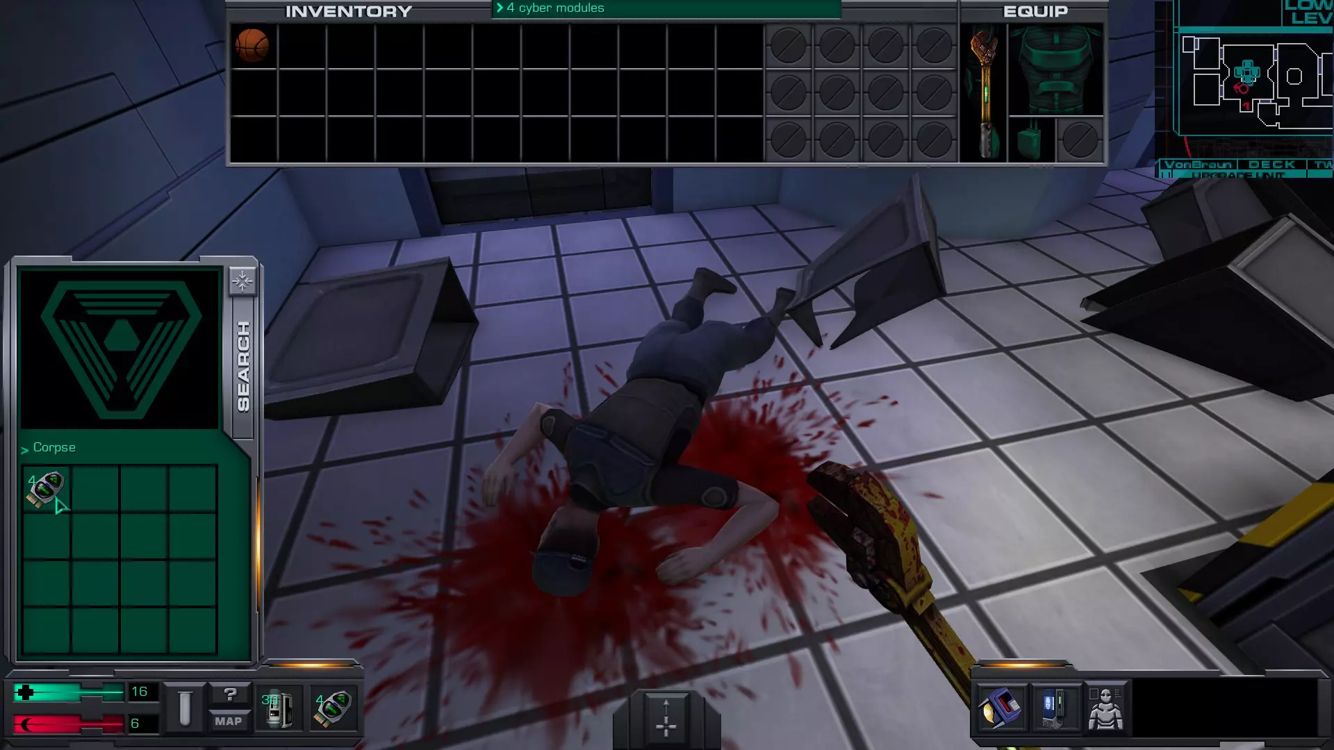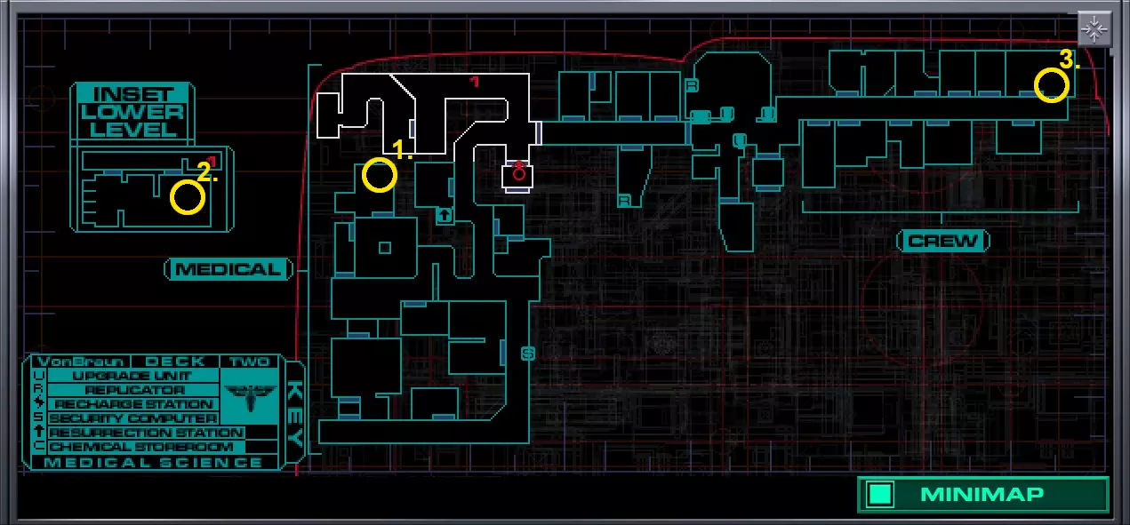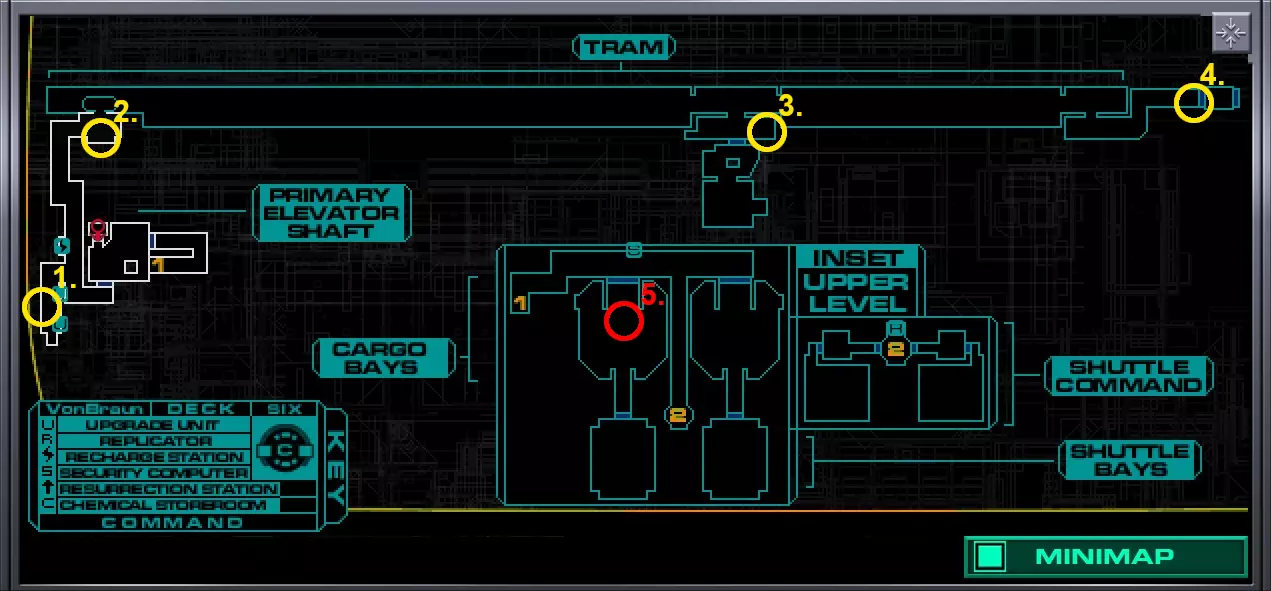 5.货舱A(靠近2号穿梭机舱)内有玛丽·德拉克鲁瓦的尸体,尸体上有10个CM。但如果你进入并搜索她,离开货舱时SHODAN会扣除10个CM,因此拿走玛丽身上的CM并不会让你获得任何增益。