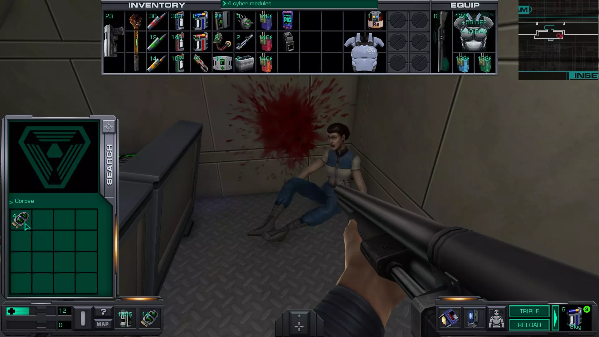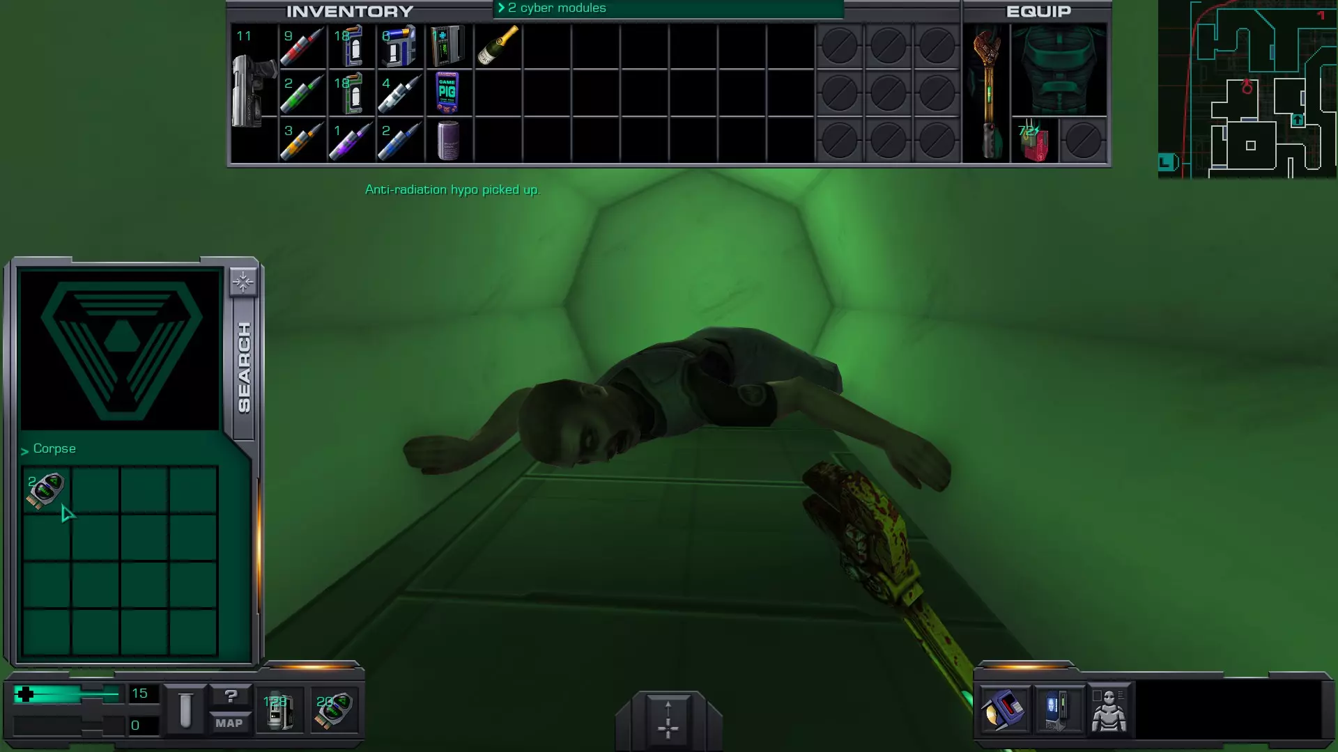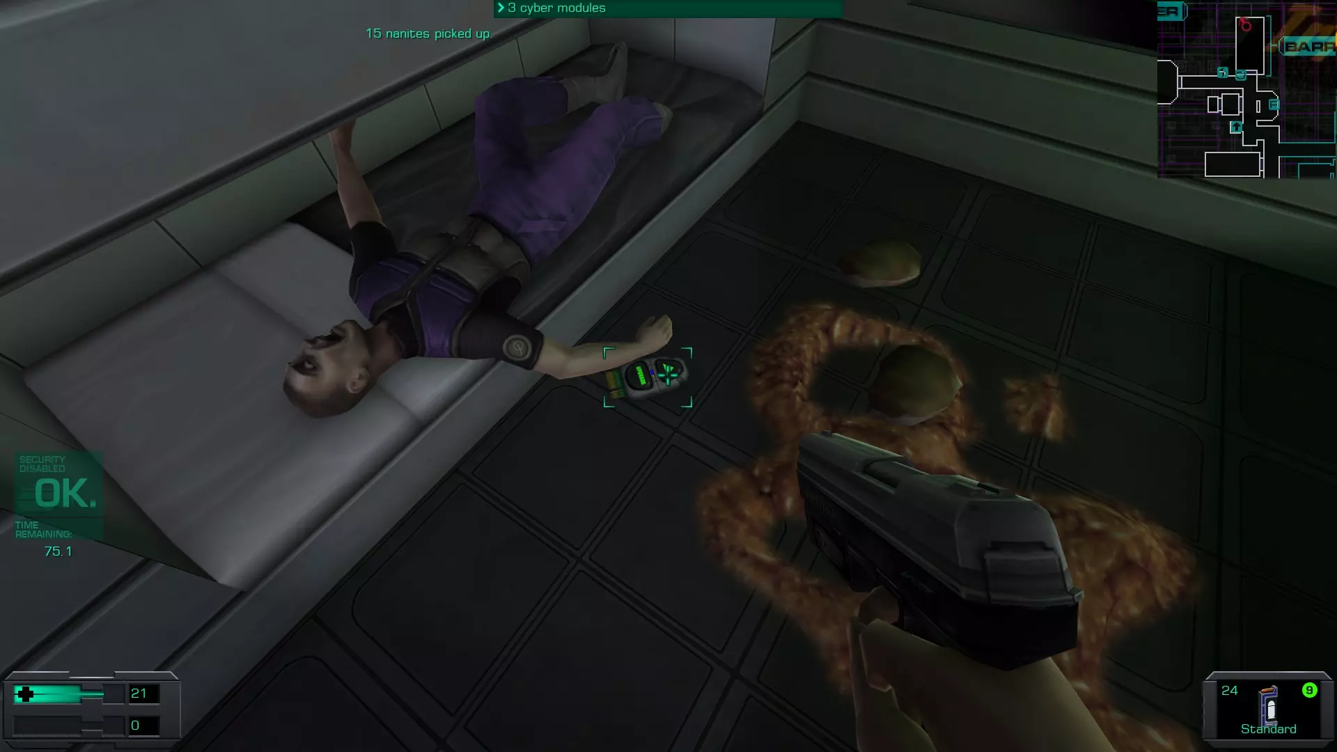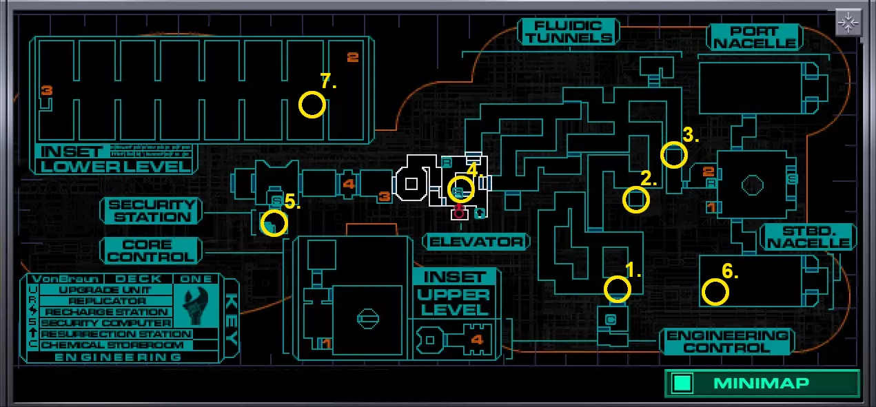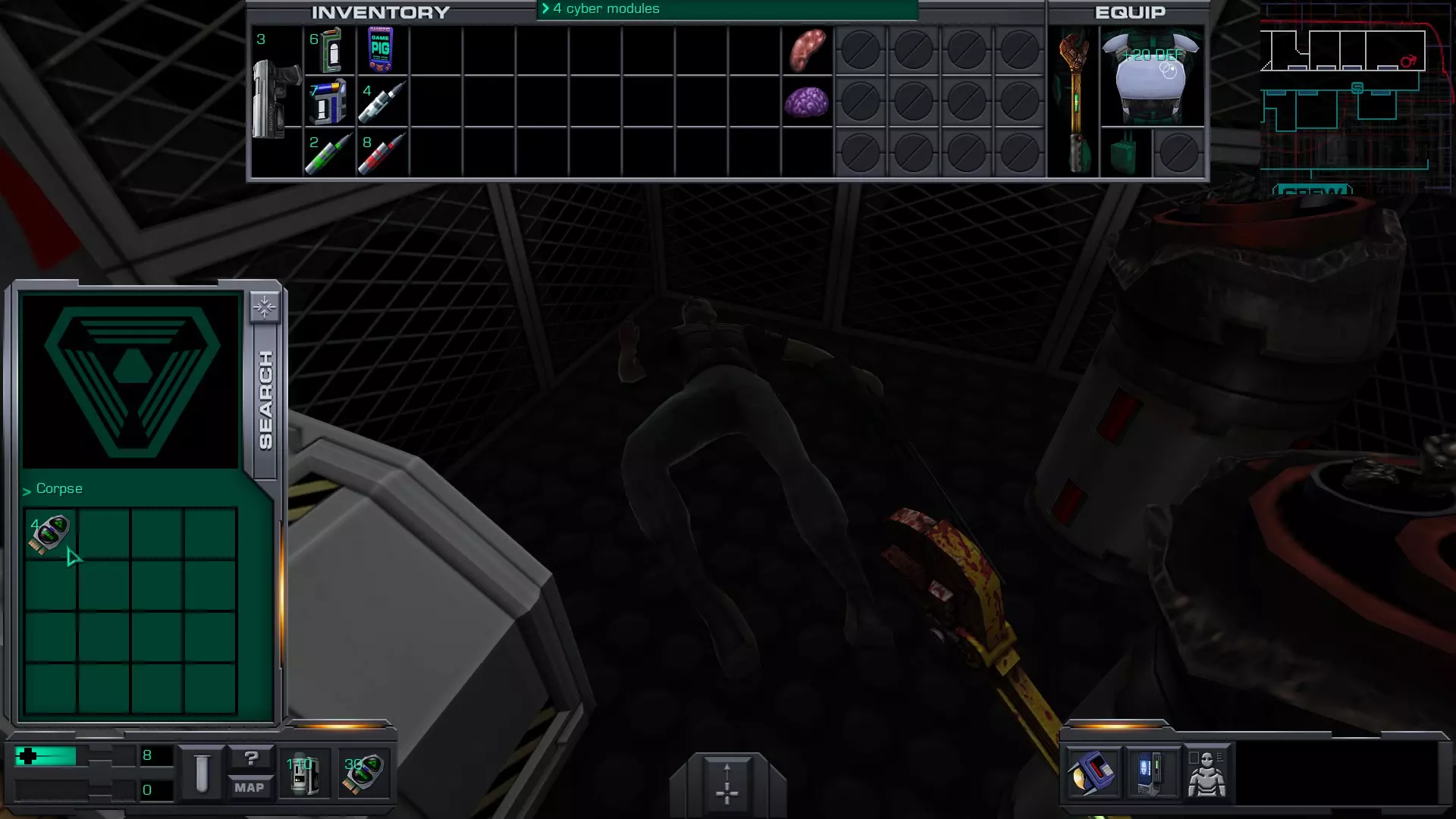 5.货舱A(靠近2号穿梭机舱)内有玛丽·德拉克鲁瓦的尸体,尸体上有10个CM。但如果你进入并搜索她,离开货舱时SHODAN会扣除10个CM,因此拿走玛丽身上的CM并不会让你获得任何增益。
