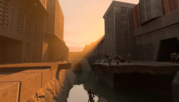 天空类型 环境天穹通过根据大气物理特性散射太阳光来模拟。 预设包括: 【Stroggos】:受原始环境美术启发的橙红色天空 地球:基于地球氧气/氮气主导大气的蓝色天空 原始环境贴图:《雷神之锤2》原始环境贴图美术。 控制台变量:physical_sky “0”(有效输入:0、1、2) 技术说明:根据QuakeWiki,《雷神之锤2》中的Stroggos星球大气“成分与地球相似”,但这似乎与游戏原始美术并不完全一致。关于斯特罗戈斯星所环绕的恒星,目前似乎也没有太多信息,因此我们假设它是一颗主序M型超巨星,并赋予了它比太阳略大的角直径和更红的颜色。切换这些预设参数会产生细微的光照差异,例如可以通过比较地面阴影的清晰度来观察到这些差异。 环境亮度 控制全局太阳和天空的亮度。自定义你的《雷神之锤2》体验:阴郁的黄昏或是耀眼的强光。
