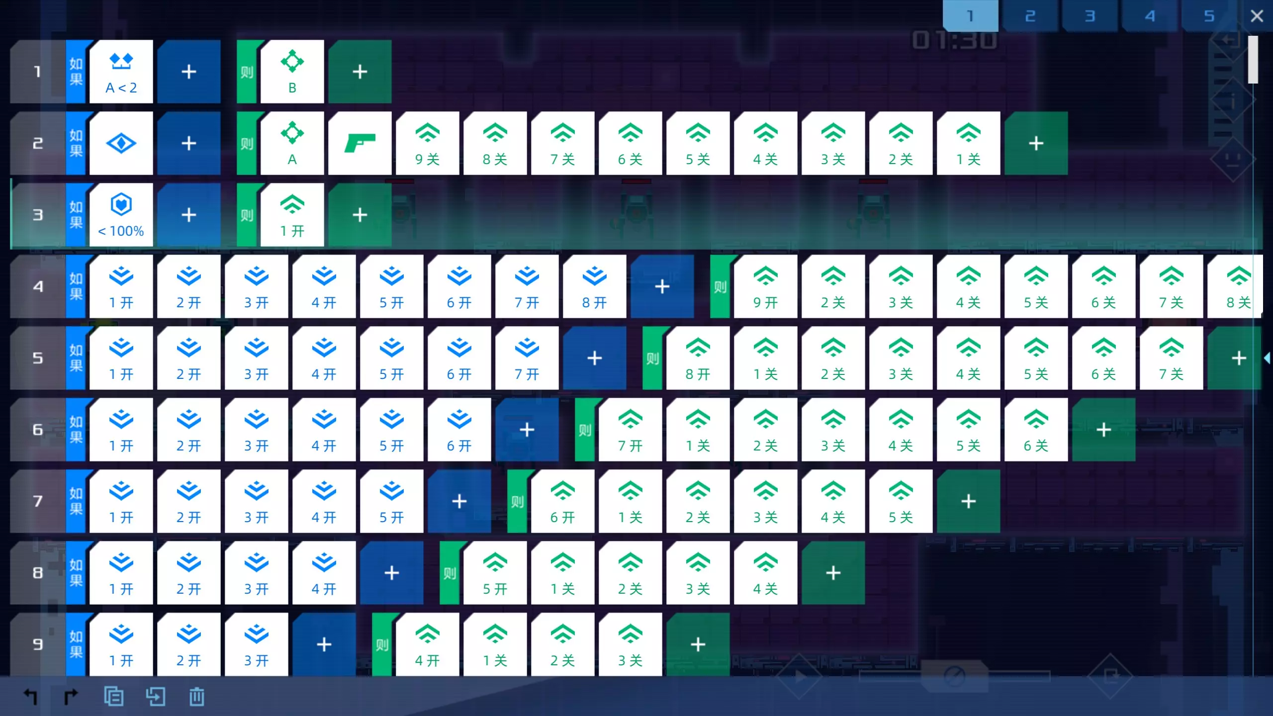 阅读工程师日志,随流程逐渐解锁,一共有9份,读过第一份以及全部读完即可获得。 成就“捣蛋鬼”:在主菜单界面空白处随意点击即可获得。 成就“好读者”:完整查看一遍帮助手册,手册中的条目会随着关卡推进逐渐解锁;如果通关时还未解锁,可以直接选择最后一关来阅读帮助手册内的每个条目。 成就“管它呢”:在设置中查看攻略。 成就“强迫症”:不使用鼠标完成一个关卡。建议直接只用键盘操作完成第一关。 小贴士:按数字键可以挑选单位以进行命令编写;空格是执行命令。 成就“挑战者”:完成一个玩家自制关卡,建议完成第一页第一个【逃脱】,非常简单。成就【舞者】:30秒内通关第17关,这是最有意思同时也最麻烦的成就,下一节将展示代码。 成就【舞者】:30秒内稳过第17关的代码 2023年10月20日亲测有效,稳定在24秒多完成。 P.S.第四行可能会遇到宽度受限导致无法新增命令的情况,建议先输入“则”的内容,再输入“如果”的内容。
