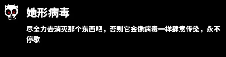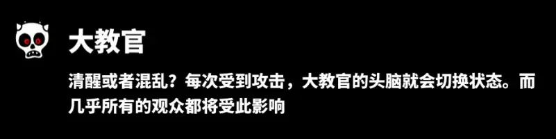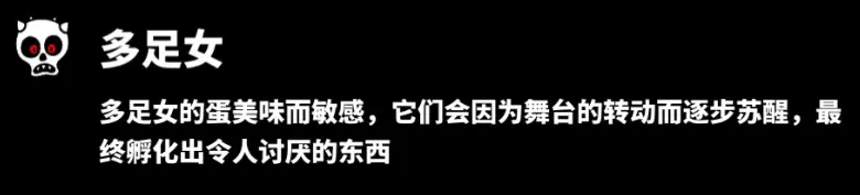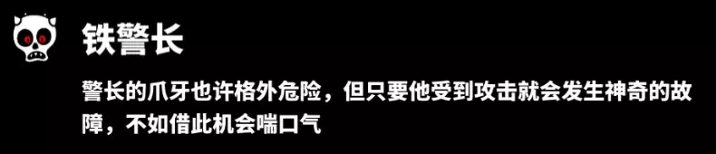 该敌人没有特殊机制,但个人认为这个敌人危害最大(同女鬼),能用道具或状态避免就尽量避免。(我的科技、混乱或者睡眠状态经常就是留给这个敌人了)因为他不仅会造成大量伤害还会传播恐慌状态,在后期关卡中危险性很高。