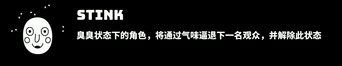 臭臭:臭臭状态在第三关出现,和睡眠一样基本无副作用,但一般出现在【坏观众】身上。所以用混乱状态的角色去吃是比较好的选择。臭臭状态可以用来弹回一名观众,并与同排的下一名观众消除掉,可以一次处理掉两名棘手的敌人,同时不会被敌人携带的状态影响。