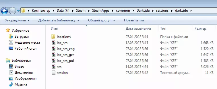 ses.kfs和loc_ses.kfs档案的位置 ses.kfs档案包含游戏运行所需的各类文件,包括单位脚本、任务脚本、英雄脚本以及场景脚本。 其位于游戏文件夹/sessions/darkside/ses.kfs路径下。 请注意,总体而言,游戏并不在意data和ses档案中的文件具体存储位置,但最好还是遵循既定的文件分配规则。如果需要方便操作,可以将压缩包解压,但之后必须通过添加到现有的.kfs格式压缩包中进行重新打包,而不是从头创建新的压缩包。 最后一个压缩包是loc_ses.kfs。默认情况下,此压缩包包含游戏的所有俄语文本,强烈不建议将其与其他压缩包混合或进行解压。 该压缩包位于游戏文件夹/sessions/darkside/loc_ses.kfs路径下。