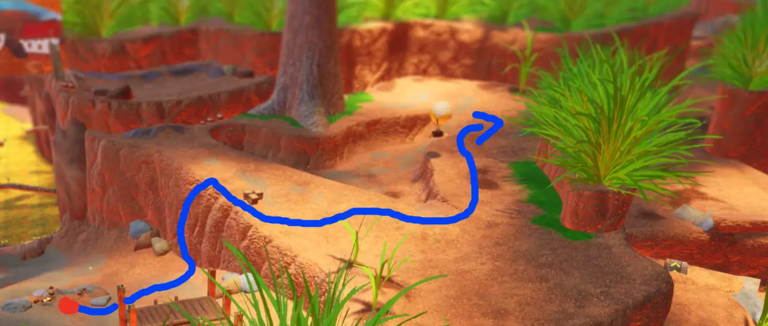 沿着这条路走到巨大的弹跳蘑菇上,它会把你一路弹到这个 puzzle Piece 那里。 Piece 3 - 主枢纽区域