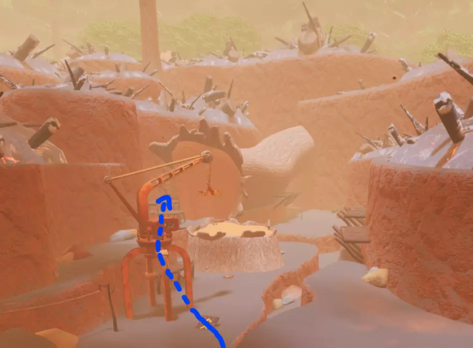 要找到这块碎片,只需找到这根木头并爬到它上面。你可以轻松地从主树滑翔下来,或者利用那些能把你弹起来的装置到达那里。在树桩顶部,你就能找到谜题碎片。 碎片## - 荒地