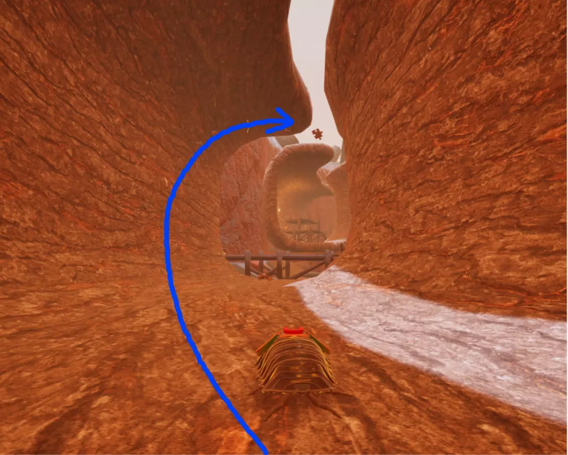 从碗里跳进到这里的管道中(可能会有几块木板挡路,直接撞碎它们就行)。 沿着管道继续向下,就能找到 puzzle piece。 【碎片8 - 蚂蚁巢穴外部】