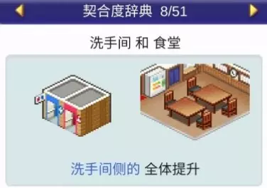 ❀ 契合度辞典 - 特色场所词辞典总览 ❀ 设施组合效果: - 洗手间+食堂:全体提升 - 洗手间+甜品店:全体下降 - 洗手间+神社:全体下降
