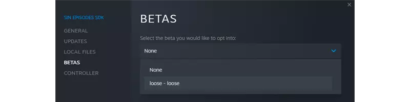 该游戏提供了一个所有人都可以选择加入的松散测试版构建,选择加入后会重新下载游戏的所有内容(约1.1GB)。与标准版本的区别在于,它会将所有VPK文件(Valve Pak,未压缩的归档文件)解压到SiN Episodes Emergence SE1中,这意味着当你想要修改游戏的某些内容时,无需每次都使用第三方程序来提取这些文件。 安装步骤: 1. 进入你的Steam库。 2. 右键点击【原罪 Episode: 浮现】。 3. 点击属性。 4. 会打开一个新窗口,在此点击测试版选项卡。 5. 然后在测试版下方选择“loose - loose”以选择加入。 现在你可以关闭窗口,Steam会自动为你下载内容。 提取示例地图