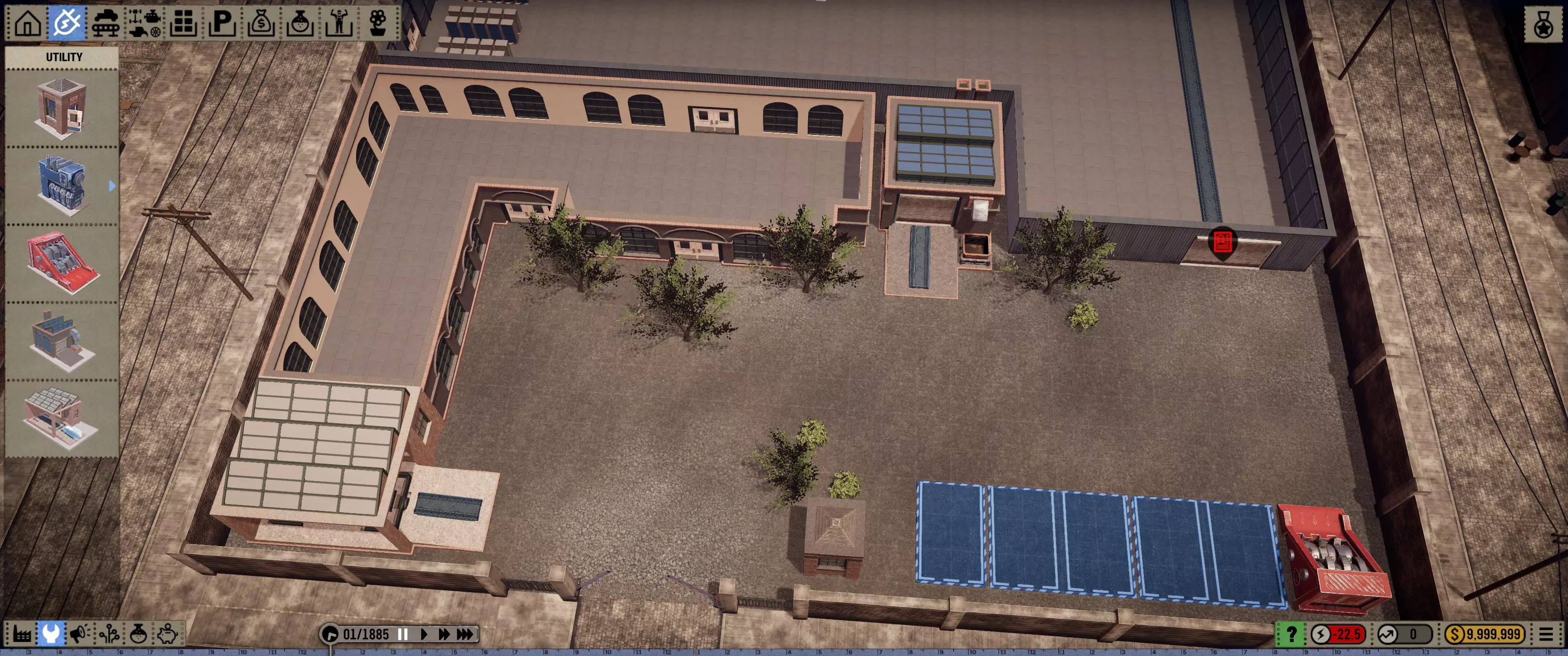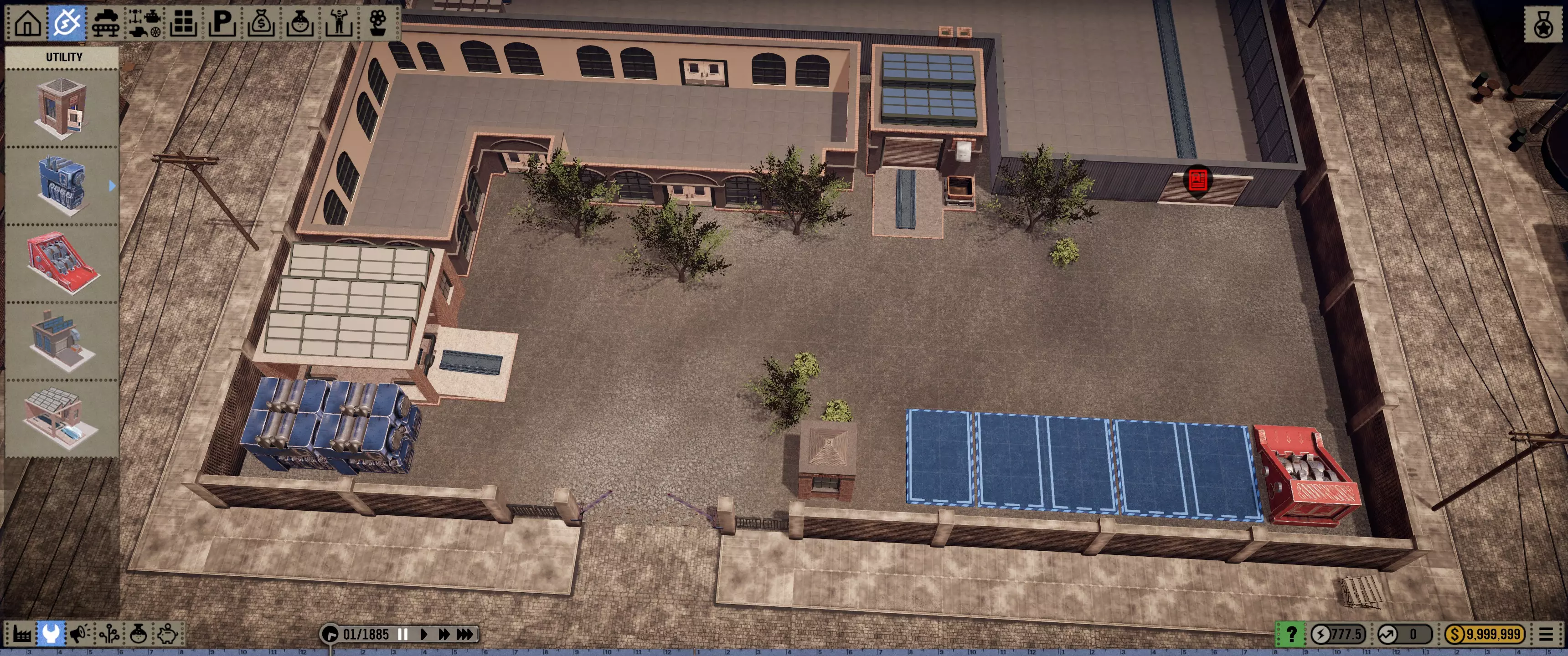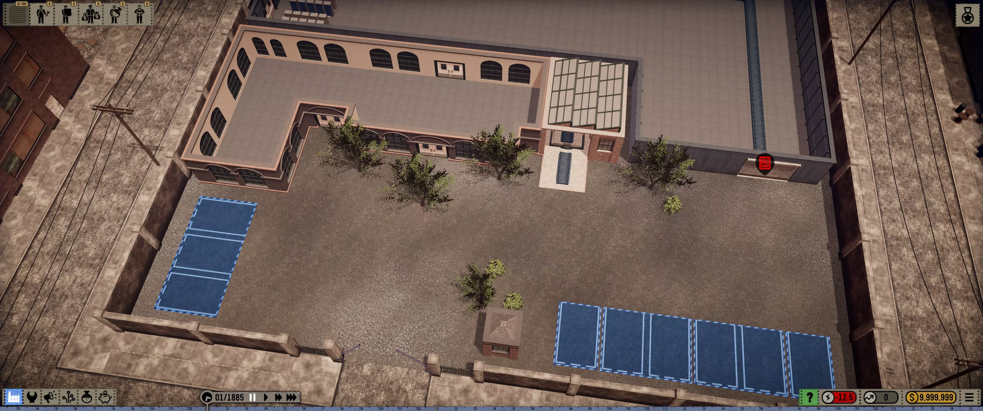 本指南中的内容可全面通用。指南也会让你能按自己的意愿进行游戏,提供符合你自身需求的选择。 让我们开始吧…… 布局 游戏加载完成后,立即按空格键暂停游戏…… 保存你的游戏,这样如果你犯错并浪费了资金,就可以重新加载游戏。 我们的初始预算是10,000美元,所以…… 为了不在布局编辑上浪费任何资金,我们将一次性建造整个展厅/工厂。让我们来谈谈尺寸问题。