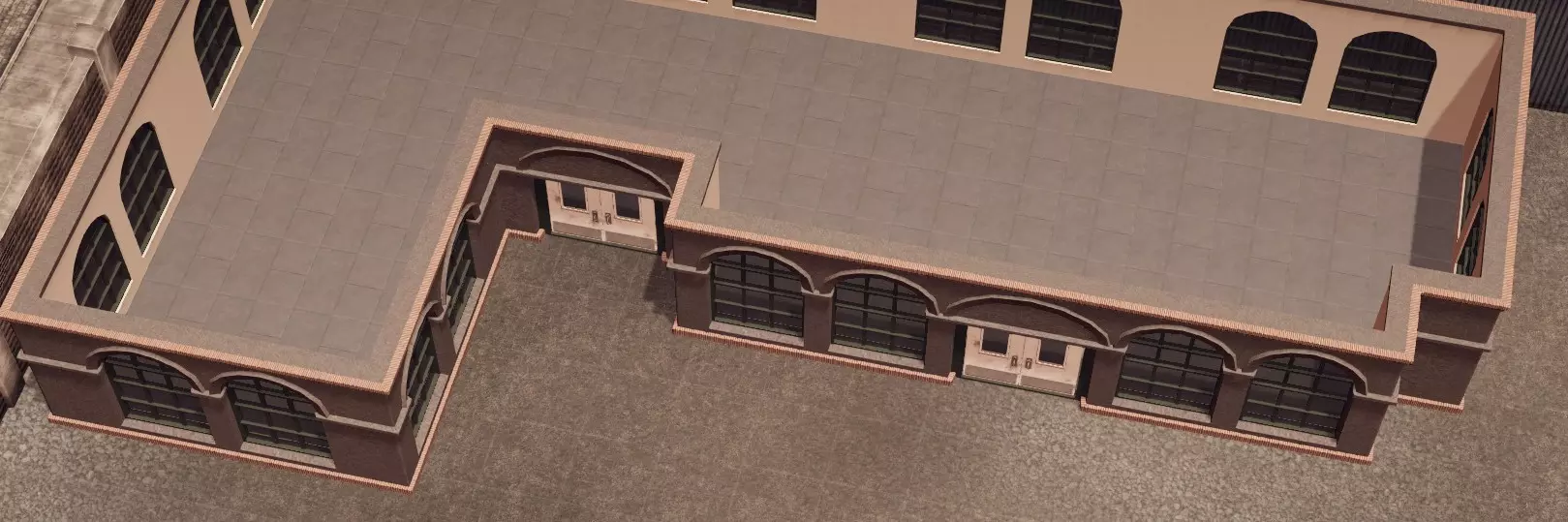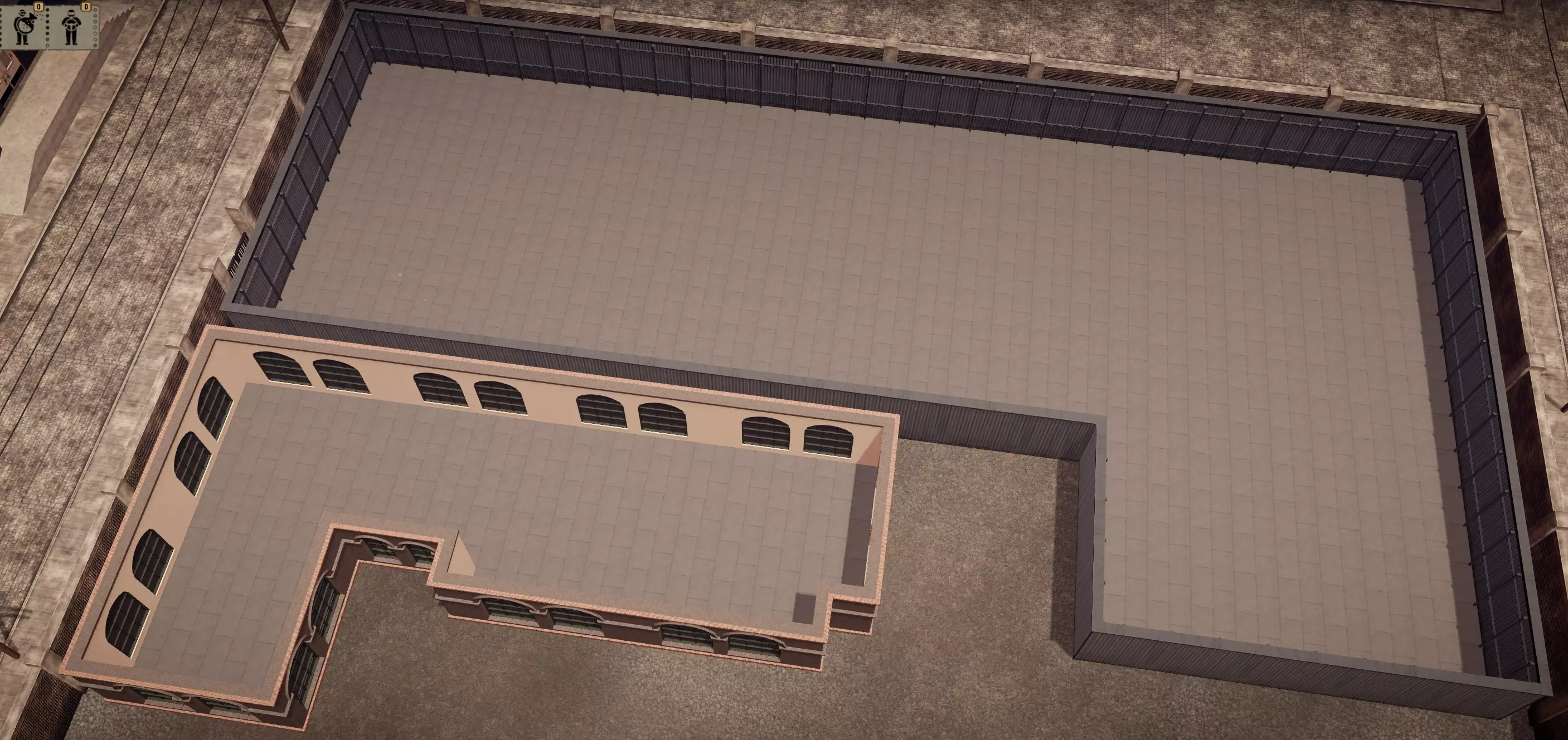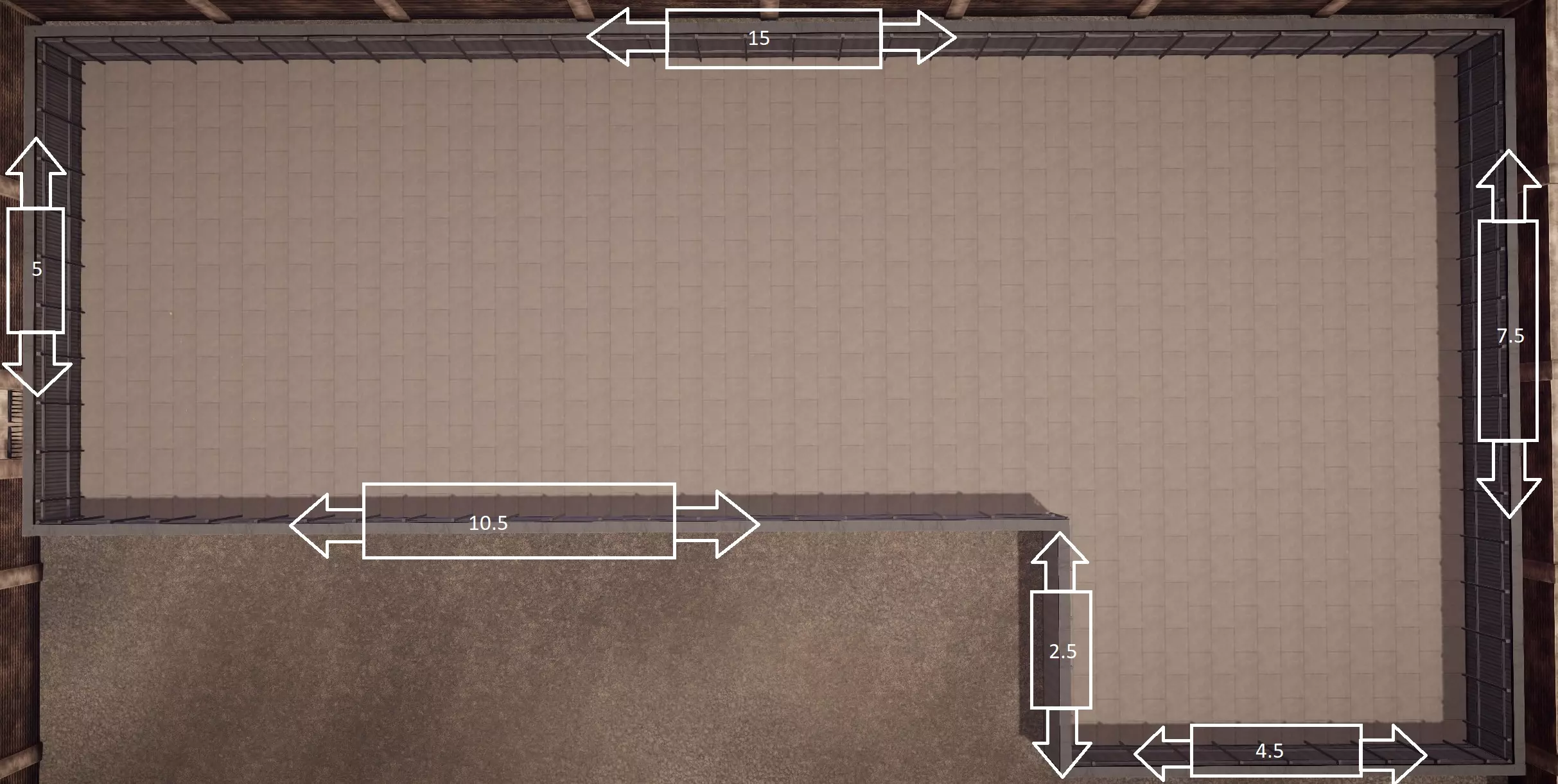 完成此步骤后,我们将开始建造工厂。使用【金属】建筑,从左上角开始,按照以下尺寸建造指定设计。