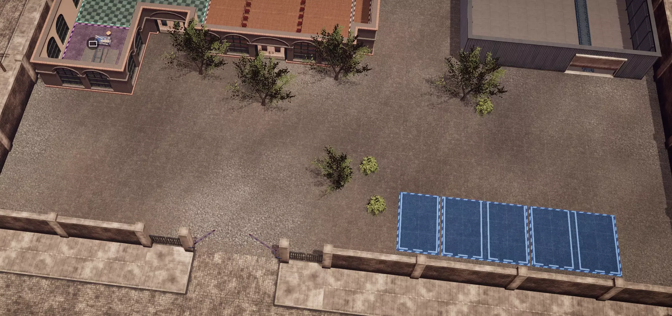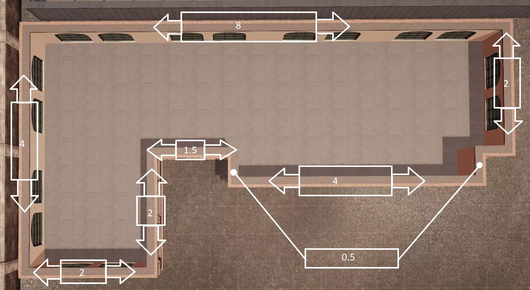 在建造菜单中,单个单位为2x2的方块,0.5是标准单位的一半。除树木/灌木外,摧毁所有不需要的物体,暂时将树木/灌木移至地图左下角,操作如下...