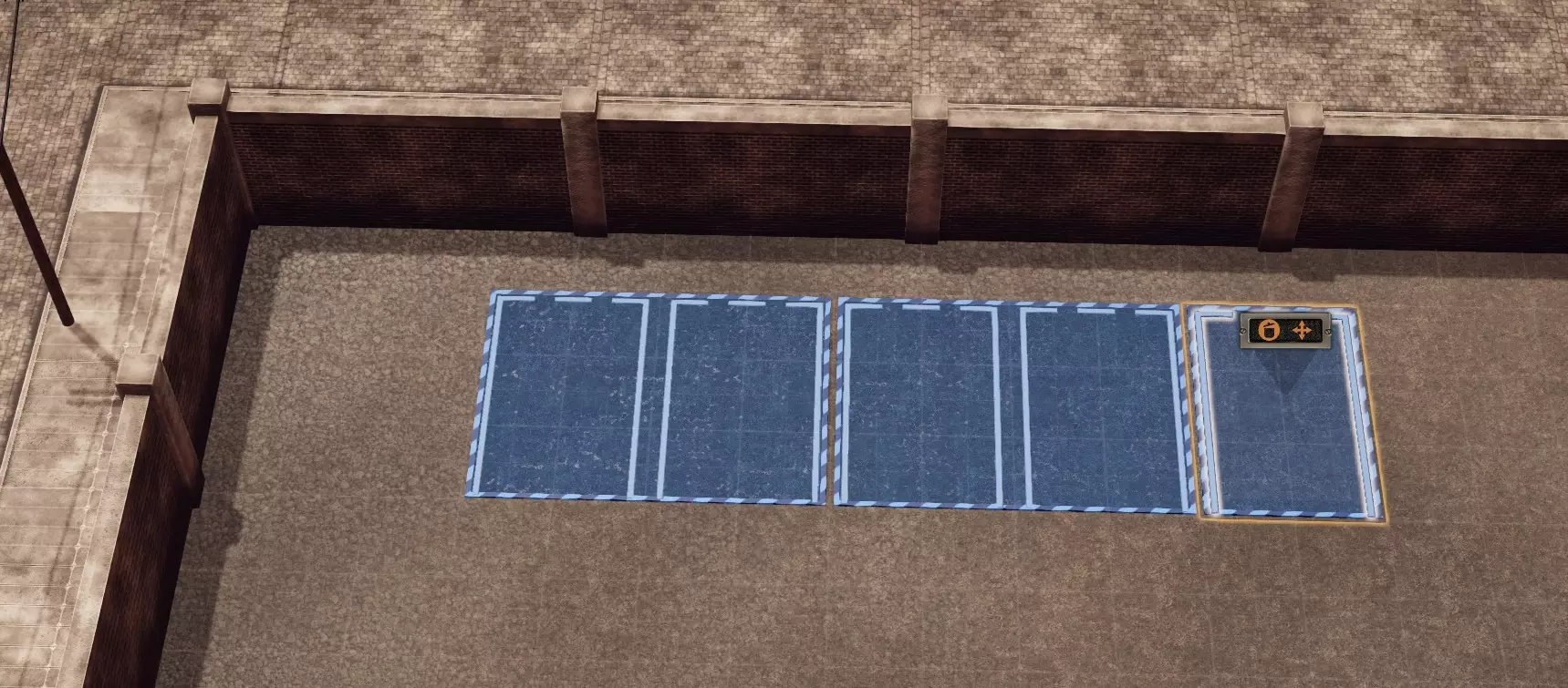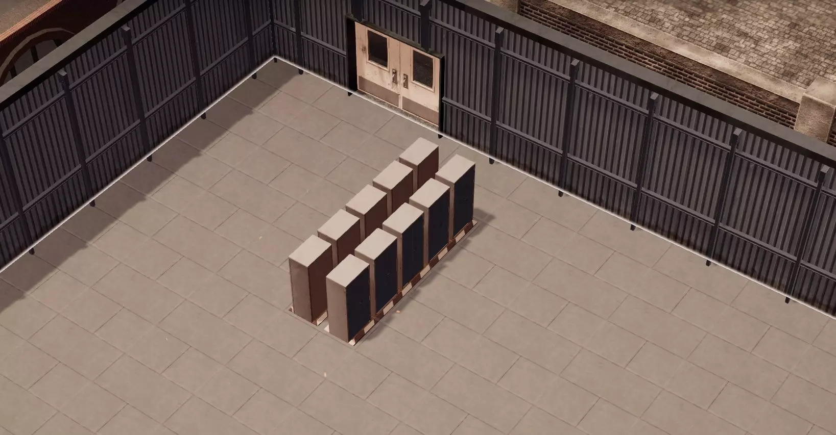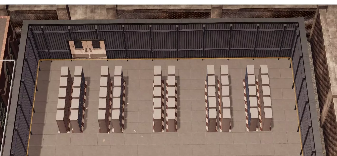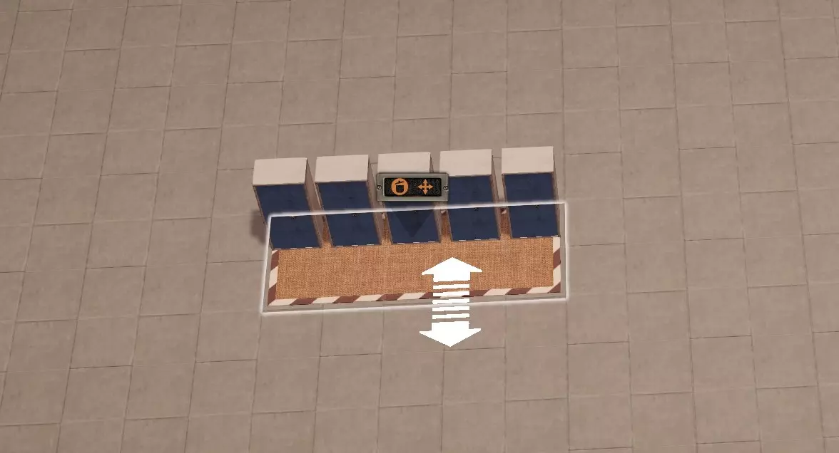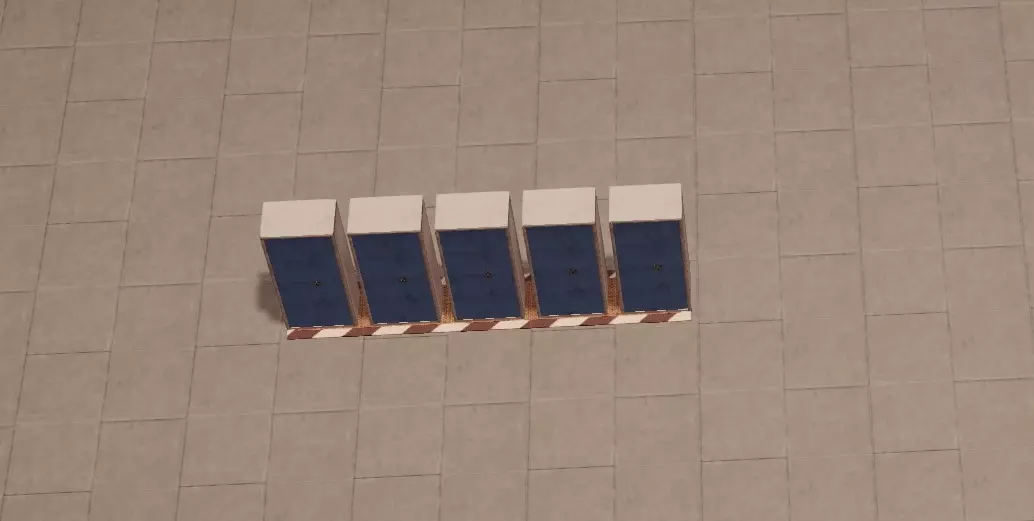 放置一个长度为5的员工区域,然后在其中添加五个储物柜。待所有储物柜就位后调整区域大小,将其移动并旋转至靠近通往仓库的门的位置。在游戏过程中,根据需要重复此过程以设置更多员工位置。 新招募员工后,只需将另一批工人分配到新储物柜即可。 这种设计不仅能让员工在最佳位置休息,还能让你一眼就能看到是否有员工一直处于闲置状态,这直观地提示你可能需要招聘更多员工。我们不会将其他类型的员工分配到这些储物柜,而是将他们分配到食堂区域,这样他们的休息位置也能与其工作站达到最优配置。接下来让我们创建该区域,先放置十把椅子,随着游戏进程的推进,这一数量也会发生变化。