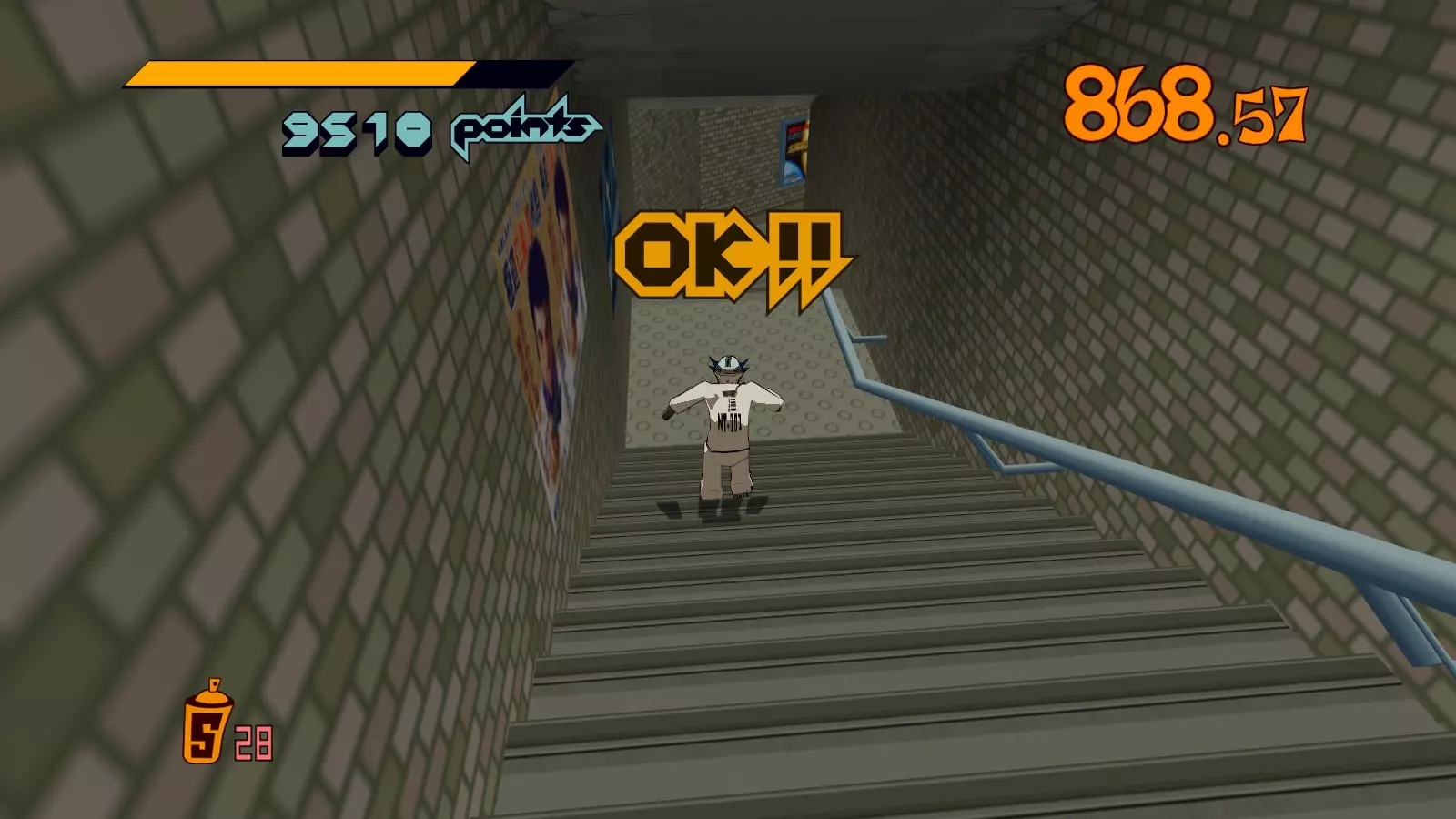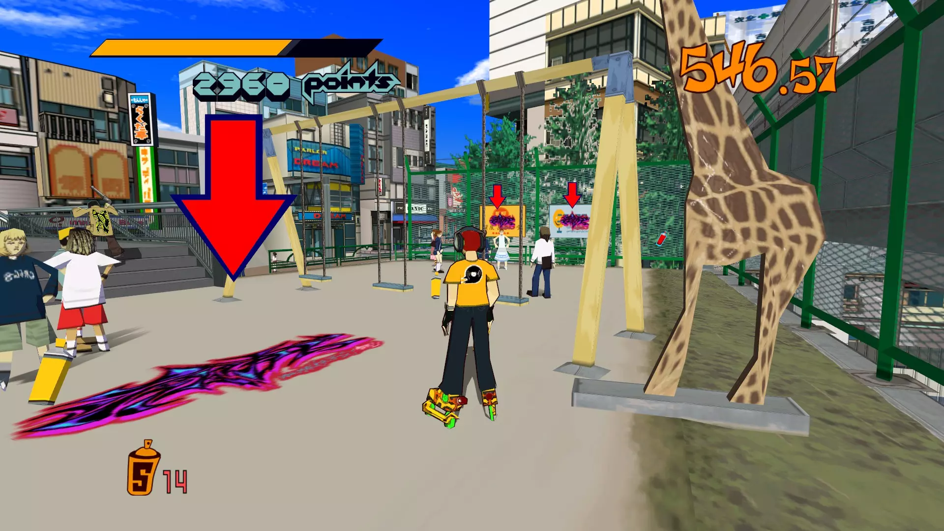 开始关卡时转身爬楼梯。在公园里收集喷漆罐时,忽略你看到的任何绿色箭头和红色箭头。你需要至少收集18个喷漆罐来应对即将到来的涂鸦。