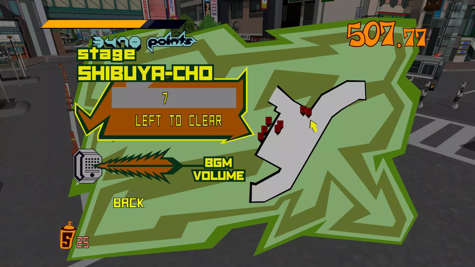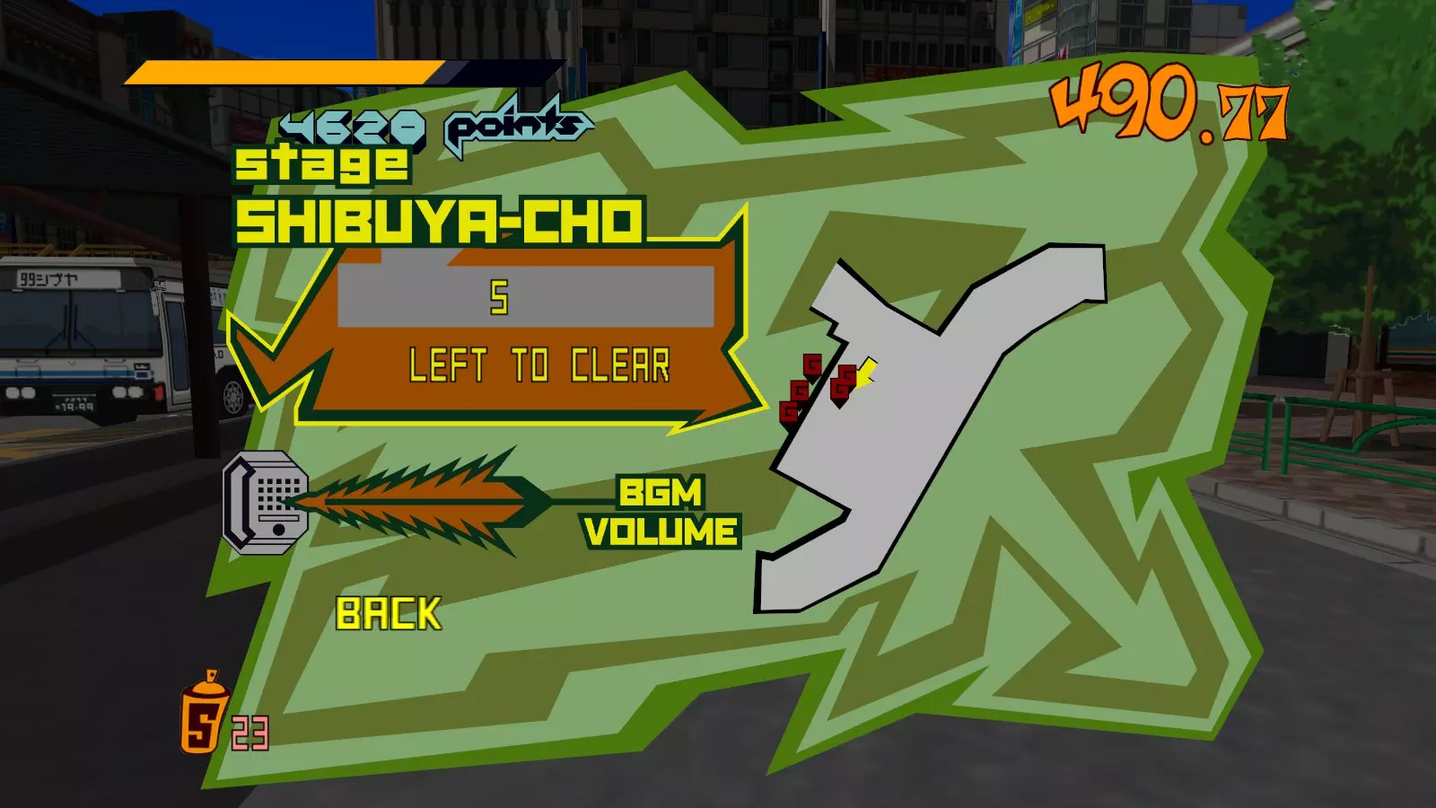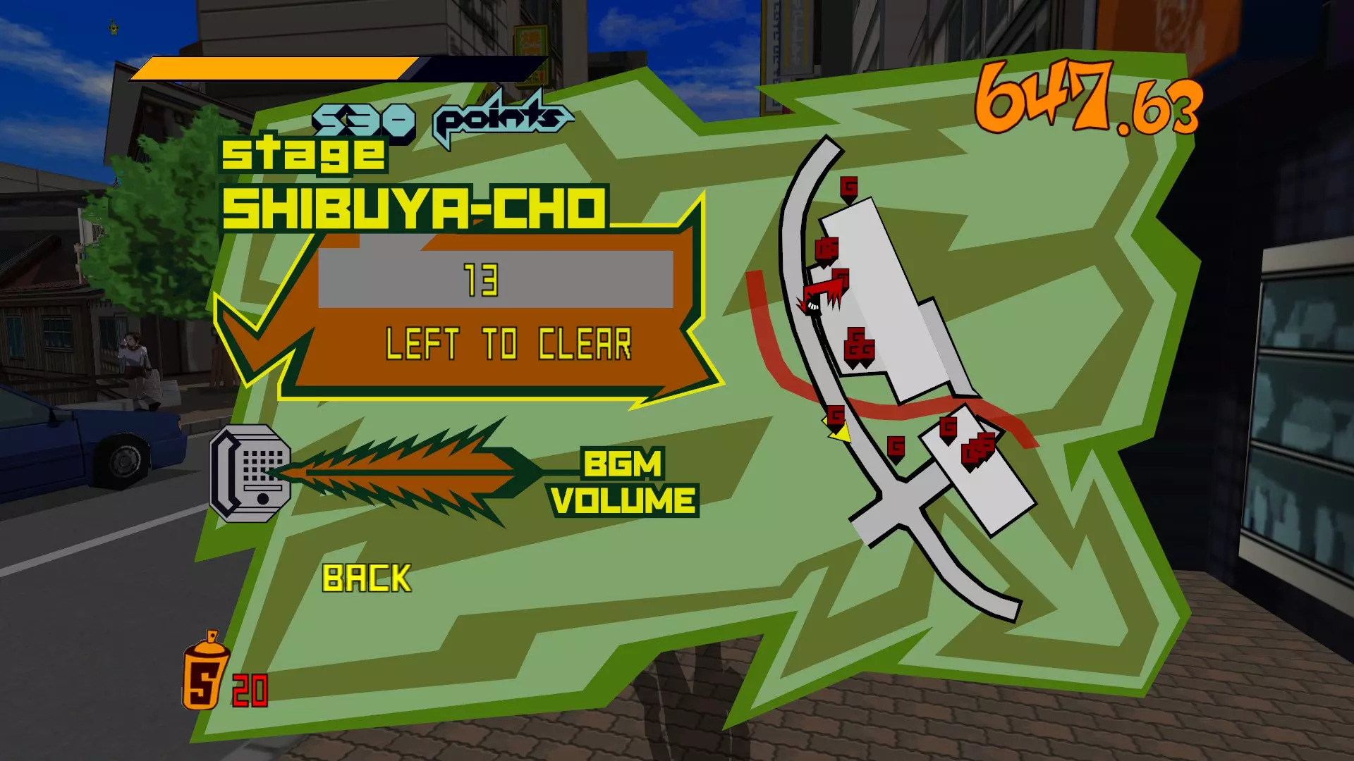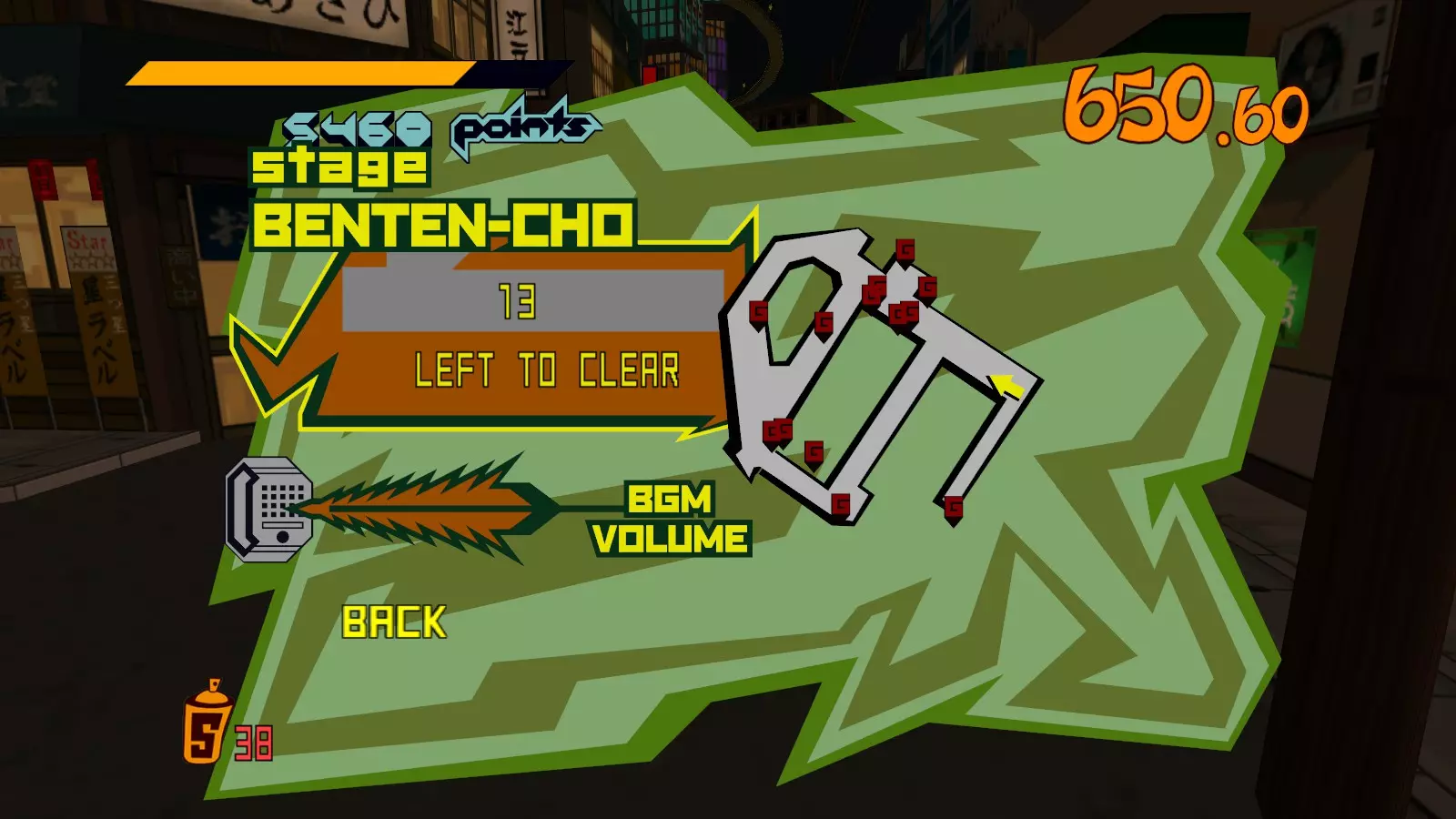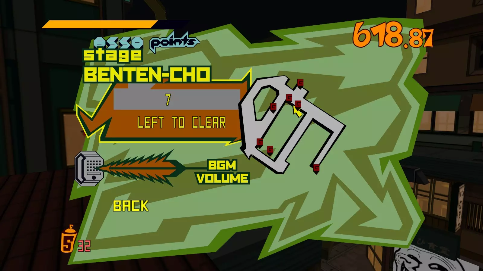 现在所有大型涂鸦都已完成,开始喷绘小型涂鸦吧。你需要尽可能多地喷绘,这样才能让恶犬消失。这会移除恶犬的追击,取而代之的是一架发射火箭的直升机。最好的方法是沿着地图逆时针绕行一圈,喷绘所有涂鸦。 一旦所有小型涂鸦都喷绘完成,你就又攻克了一张地图。 弁天摇摆指南