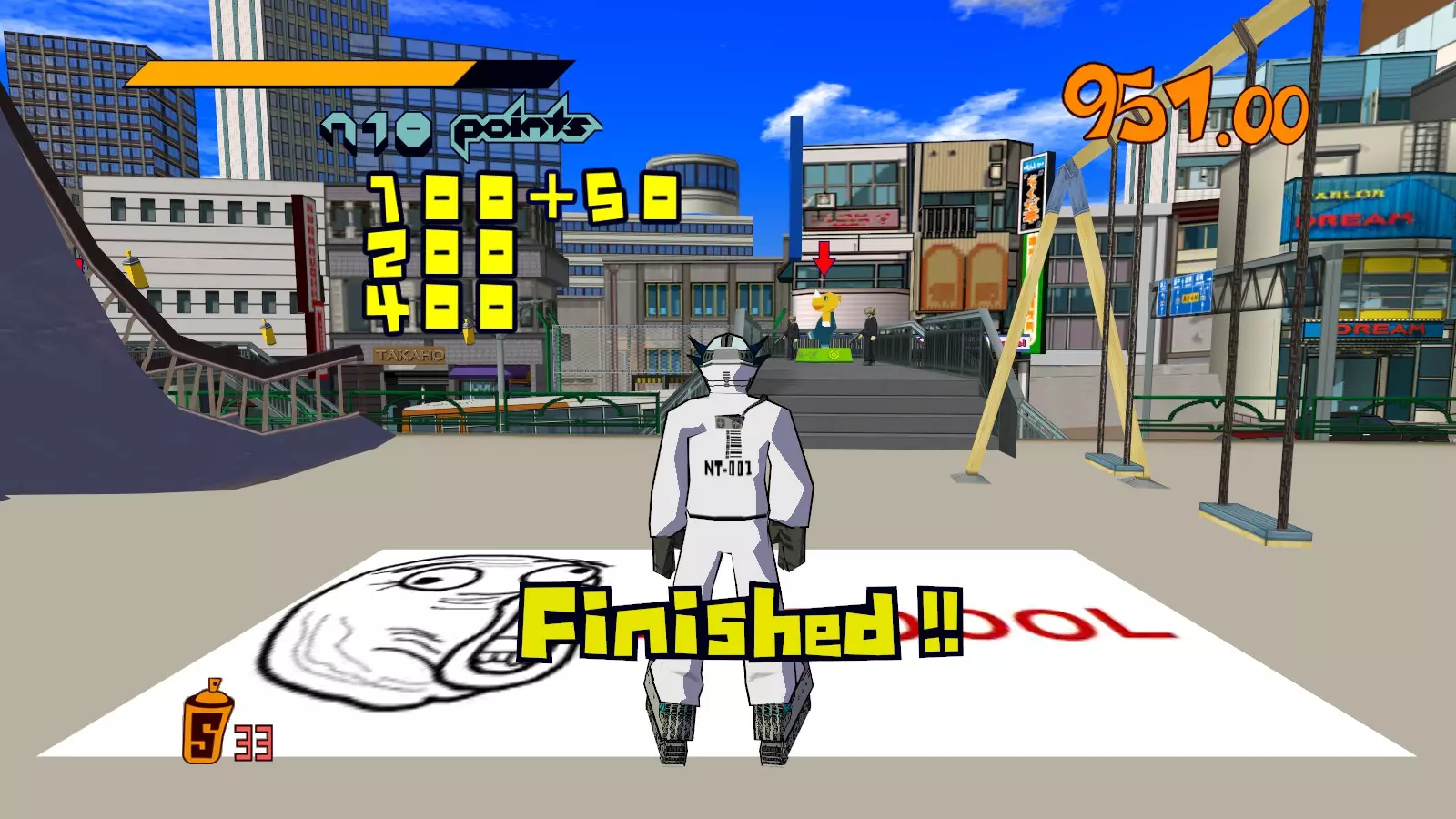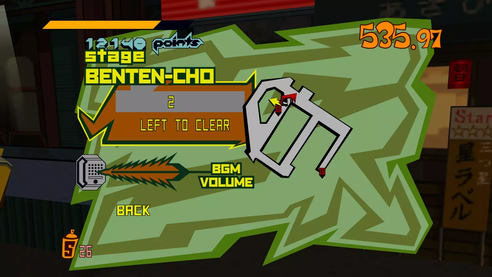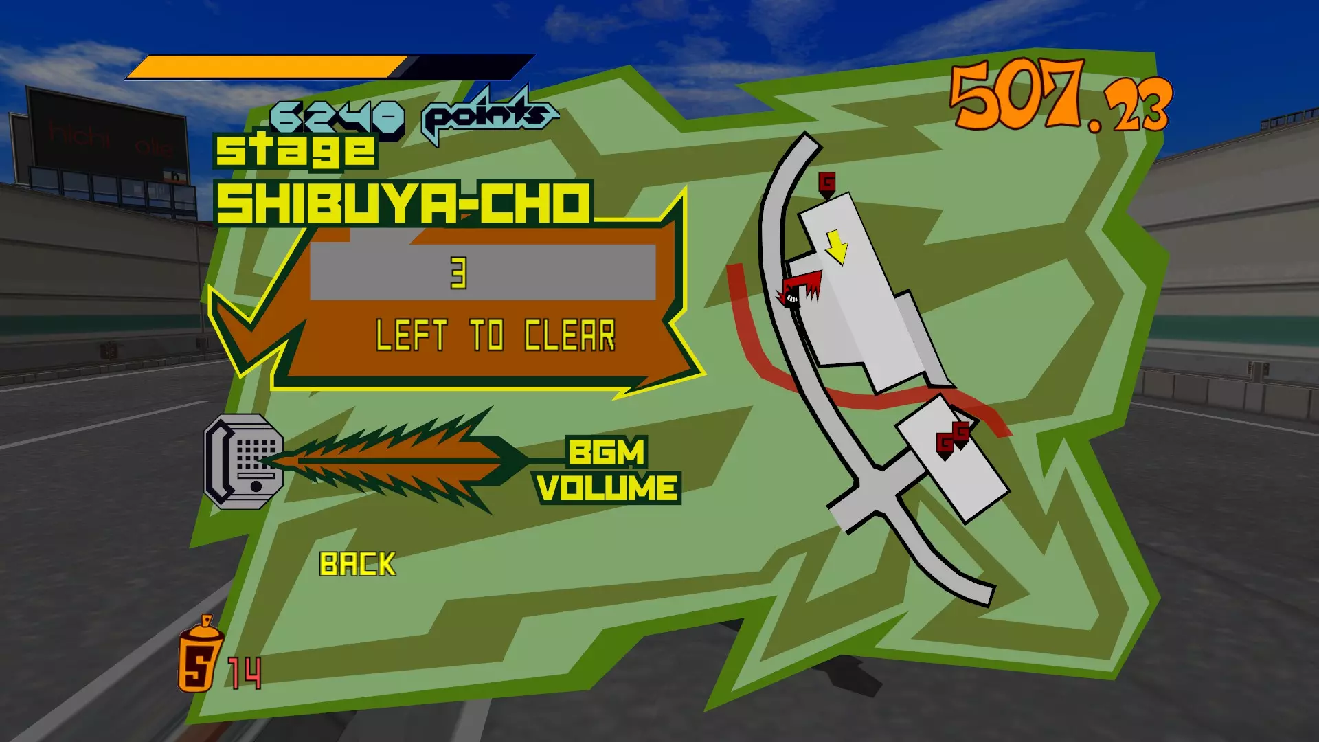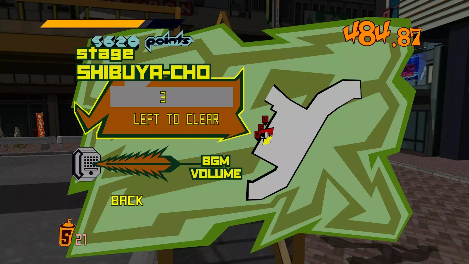 现在所有大型涂鸦都已完成,开始喷绘小型涂鸦吧。你需要尽可能多地喷绘,这样才能让恶犬消失。这会移除恶犬的追击,取而代之的是一架发射火箭的直升机。最好的方法是沿着地图逆时针绕行一圈,喷绘所有涂鸦。 一旦所有小型涂鸦都喷绘完成,你就又攻克了一张地图。 弁天摇摆指南