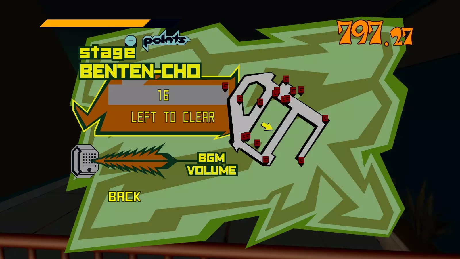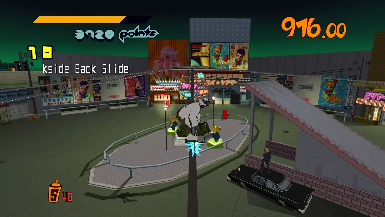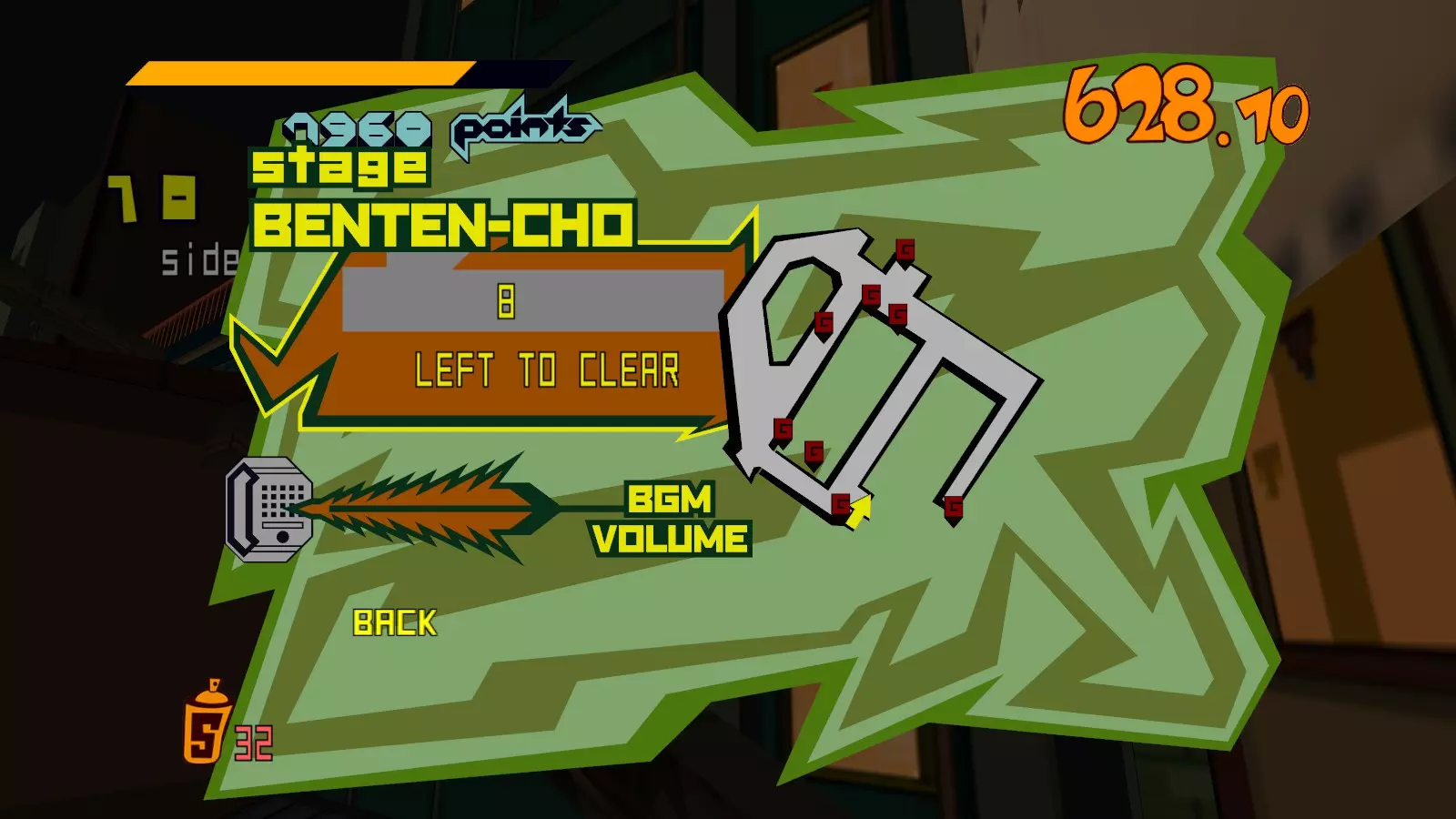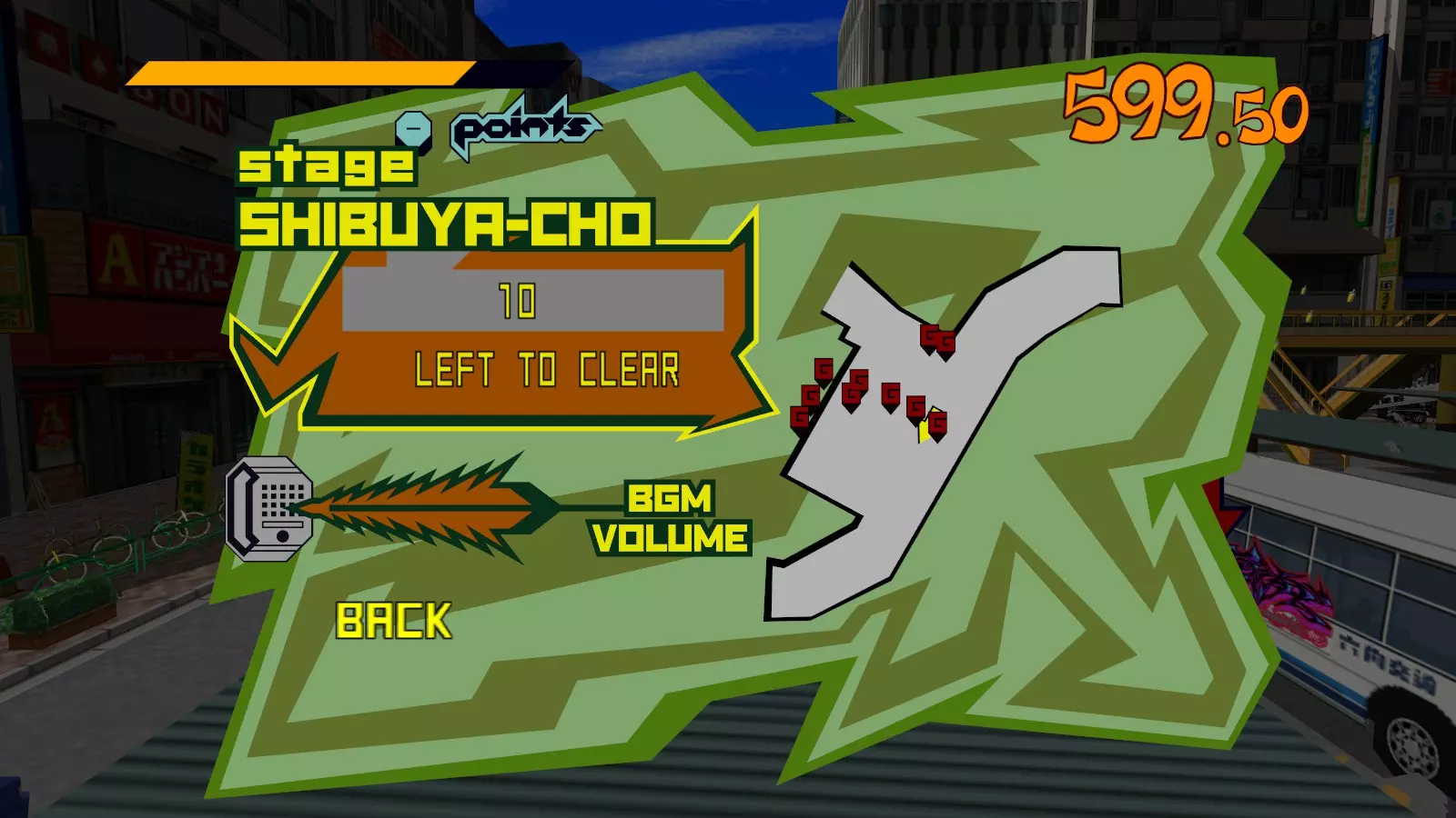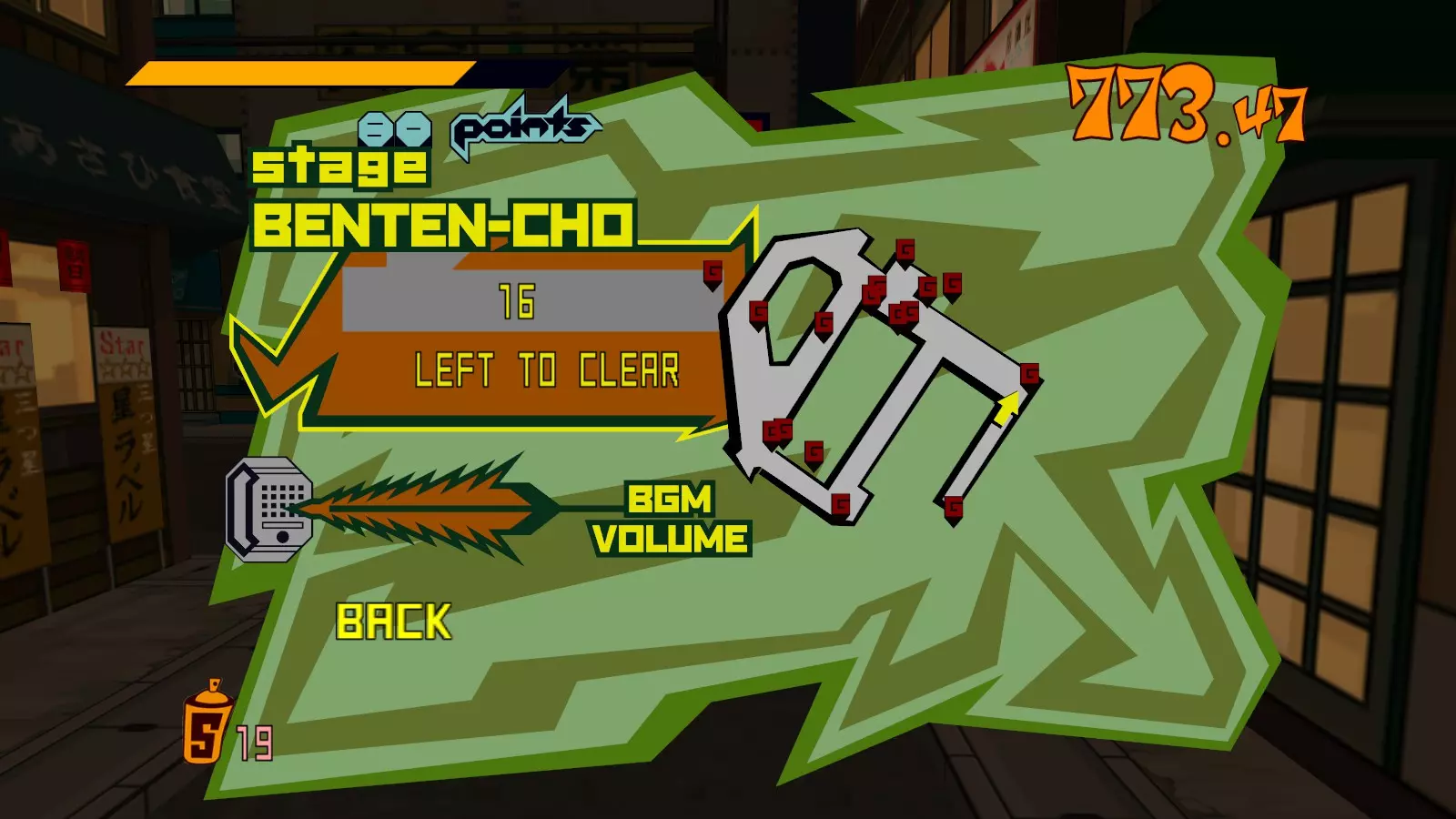 现在所有大型涂鸦都已完成,开始喷绘小型涂鸦吧。你需要尽可能多地喷绘,这样才能让恶犬消失。这会移除恶犬的追击,取而代之的是一架发射火箭的直升机。最好的方法是沿着地图逆时针绕行一圈,喷绘所有涂鸦。 一旦所有小型涂鸦都喷绘完成,你就又攻克了一张地图。 弁天摇摆指南