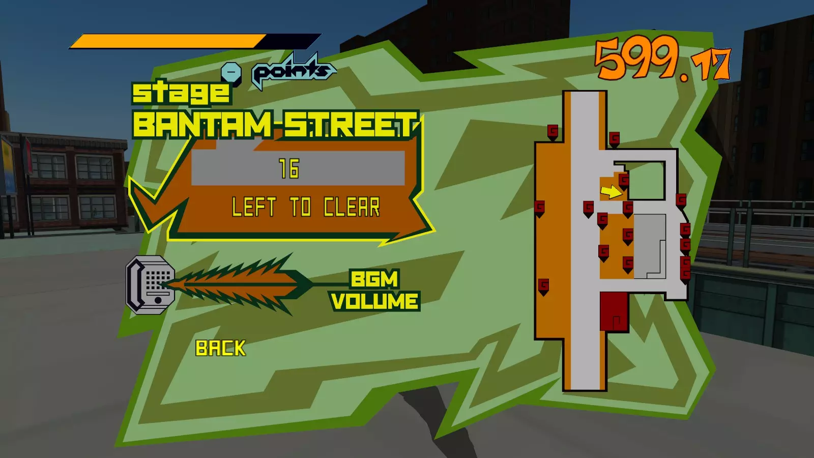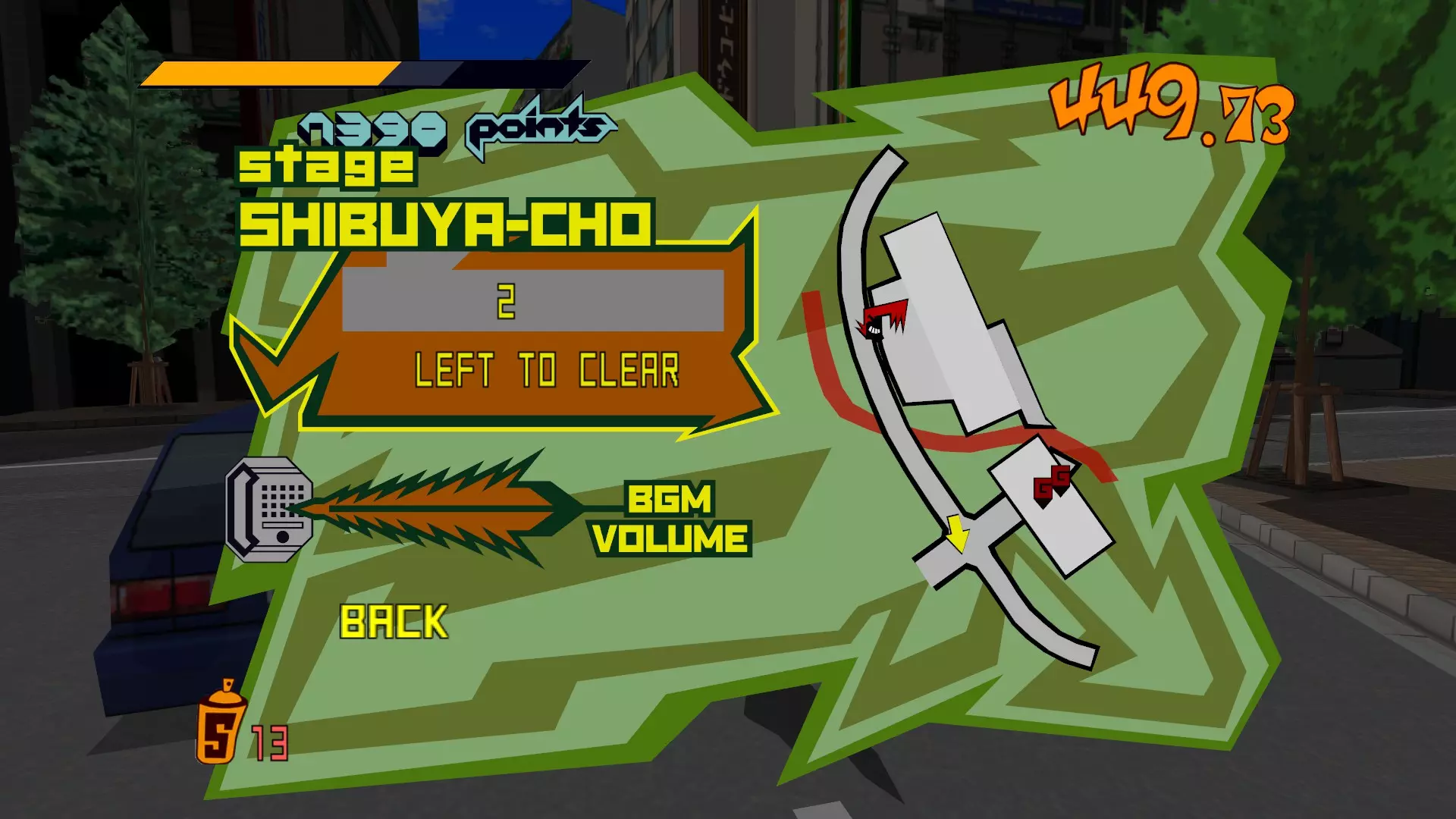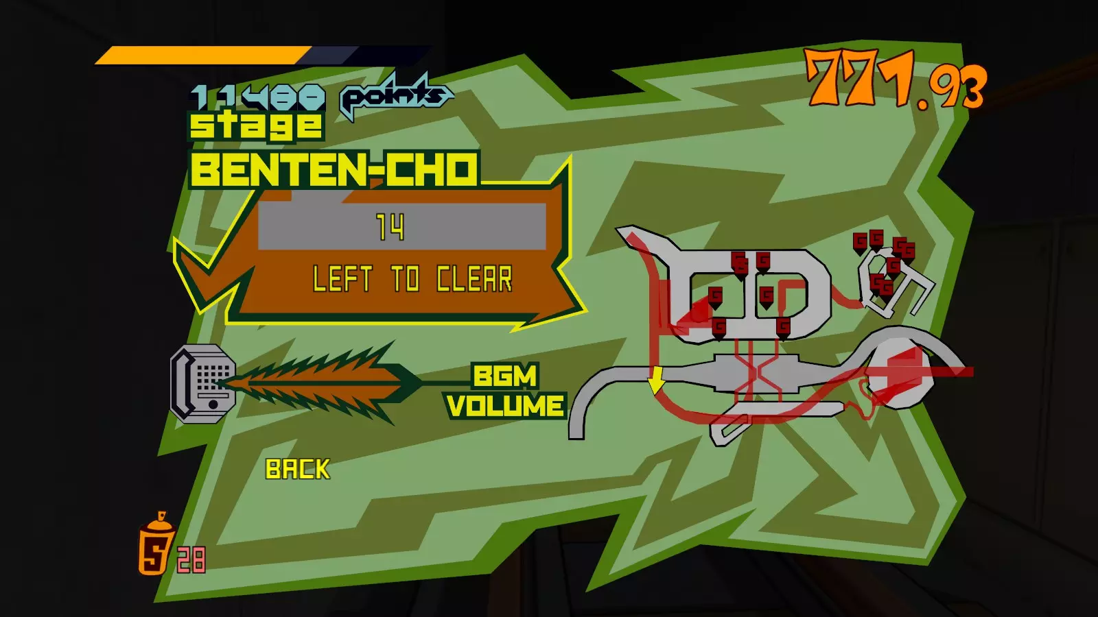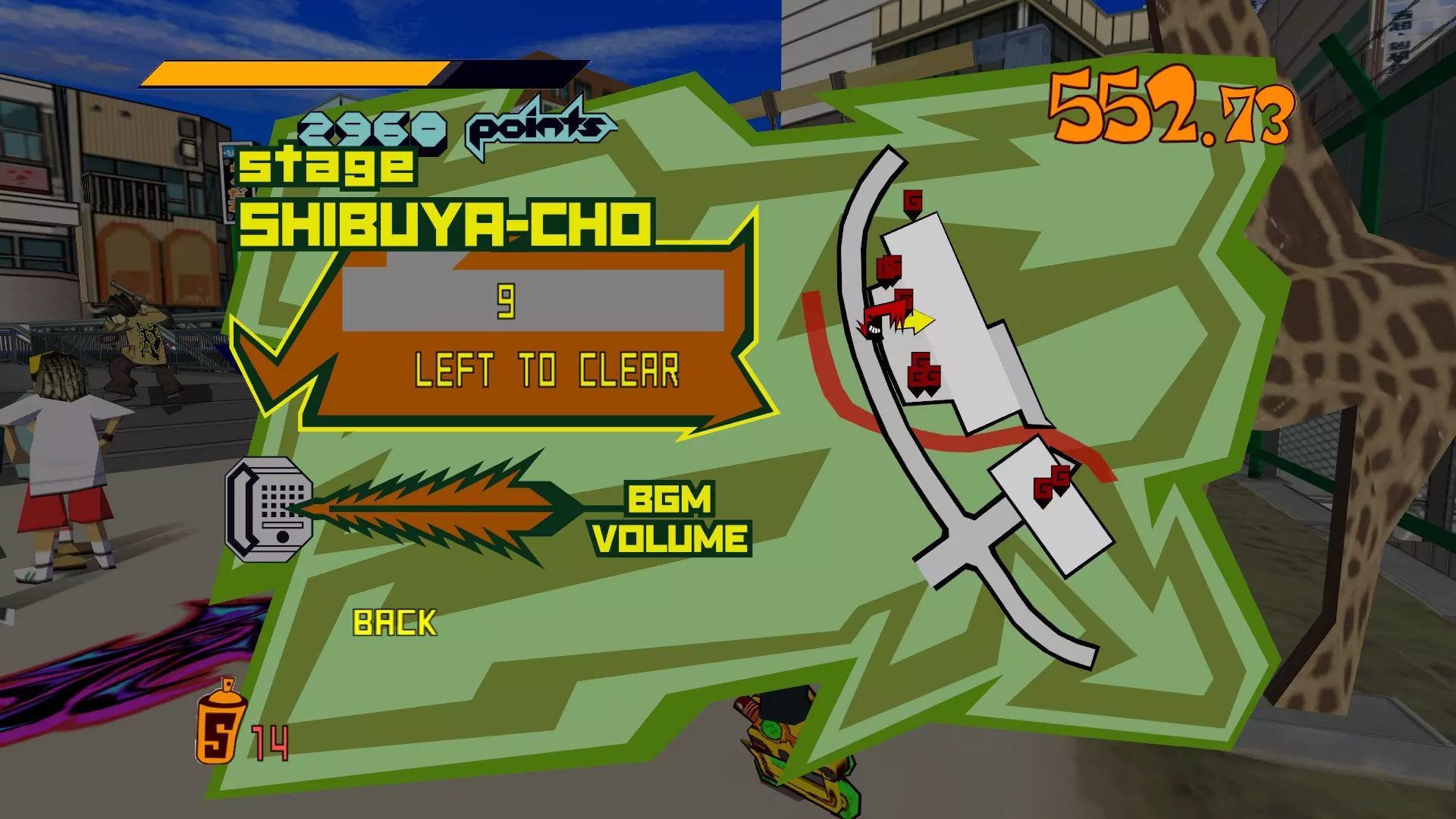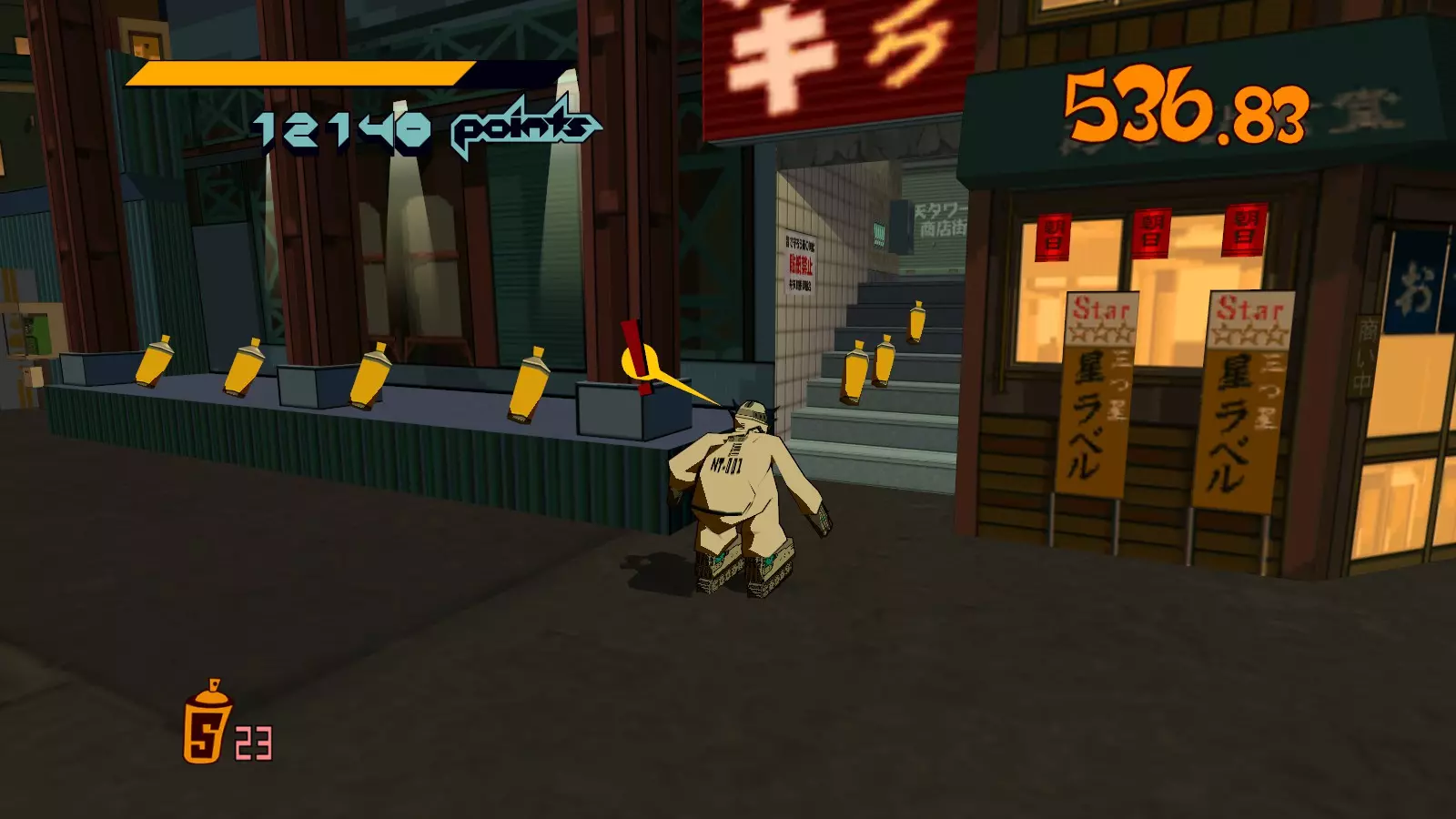 现在所有大型涂鸦都已完成,开始喷绘小型涂鸦吧。你需要尽可能多地喷绘,这样才能让恶犬消失。这会移除恶犬的追击,取而代之的是一架发射火箭的直升机。最好的方法是沿着地图逆时针绕行一圈,喷绘所有涂鸦。 一旦所有小型涂鸦都喷绘完成,你就又攻克了一张地图。 弁天摇摆指南
