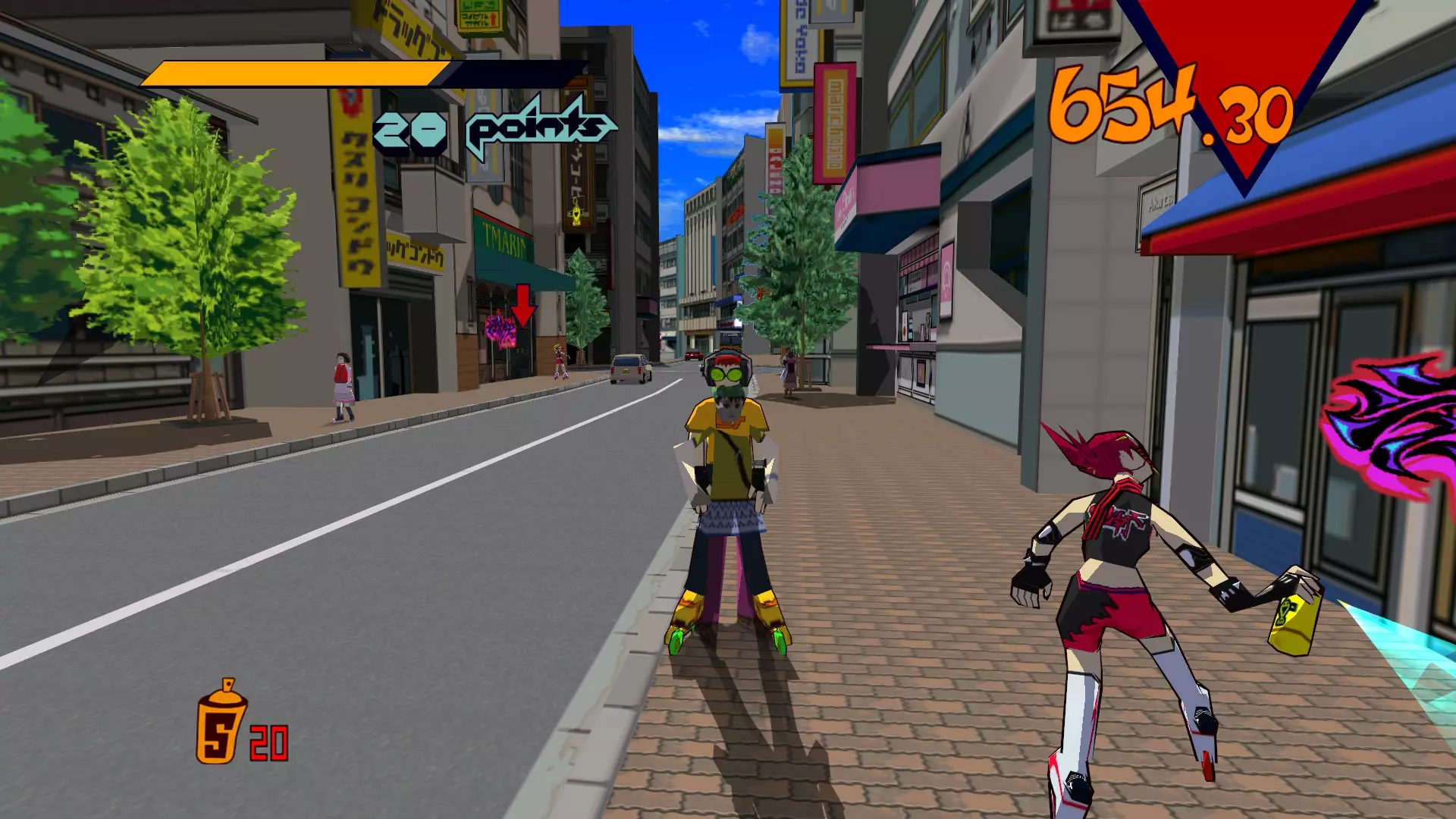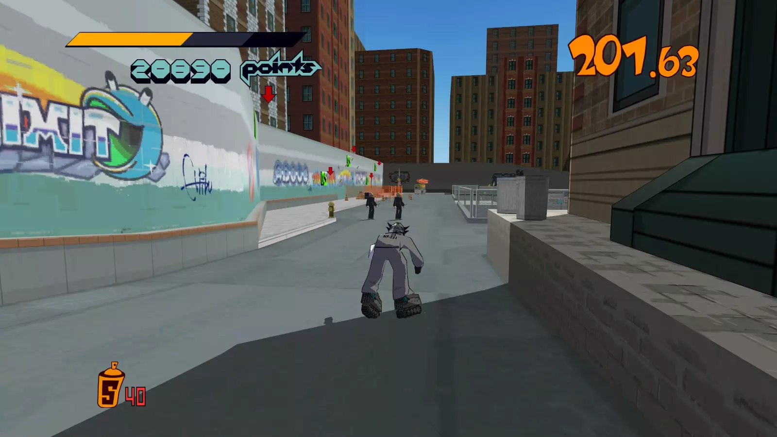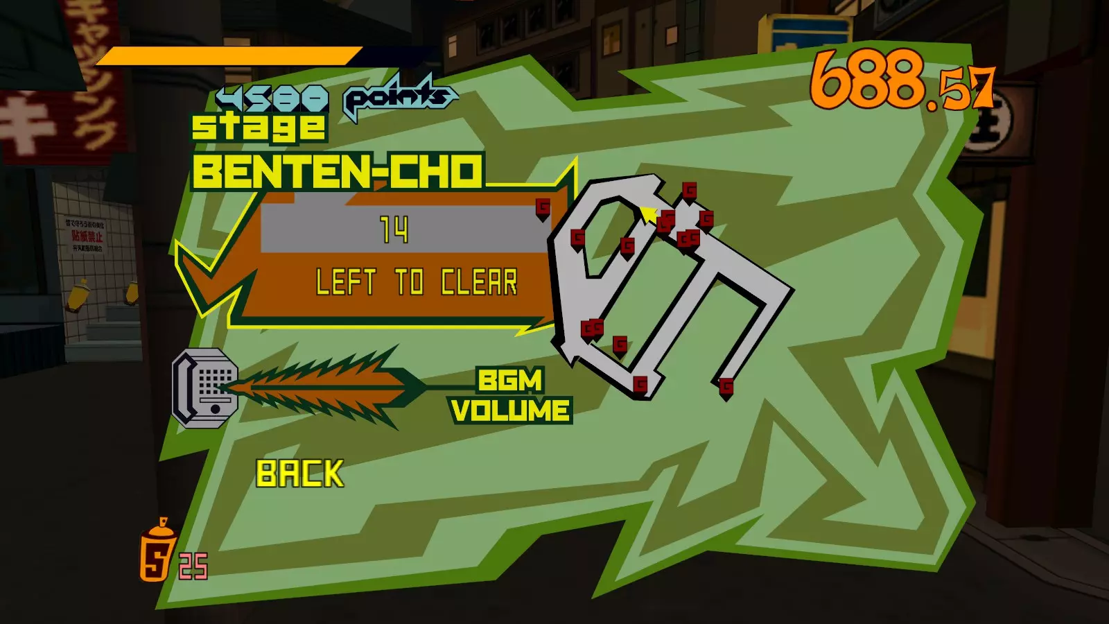 开始此关卡时,先四处收集所有喷漆罐。记得攻击爱心电击者来获取3个喷漆罐。这很有帮助,因为它们位于大型涂鸦和单个超大型涂鸦的前方。