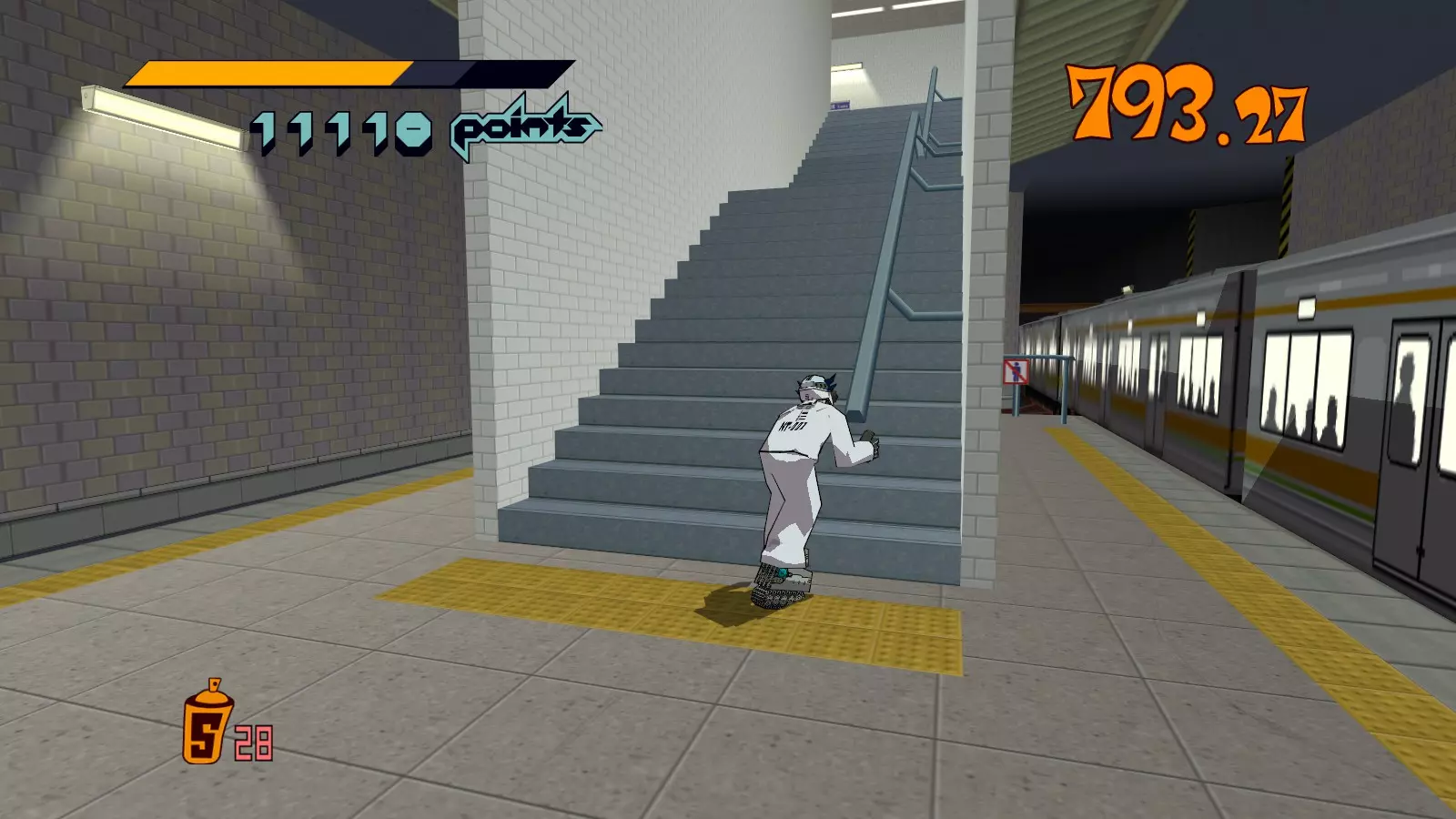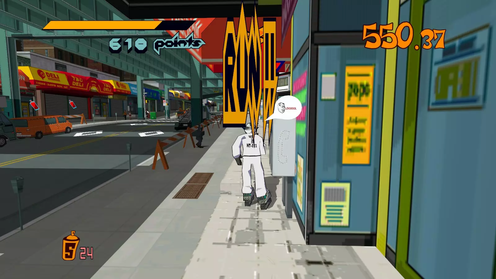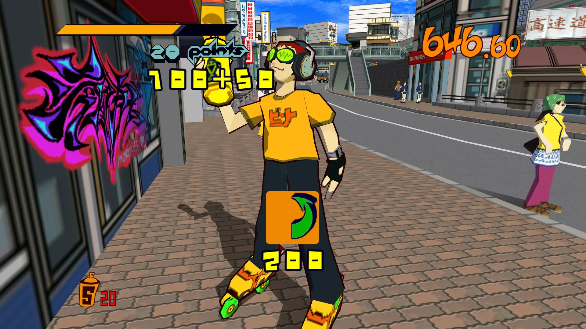 开始此关卡时,先四处收集所有喷漆罐。记得攻击爱心电击者来获取3个喷漆罐。这很有帮助,因为它们位于大型涂鸦和单个超大型涂鸦的前方。