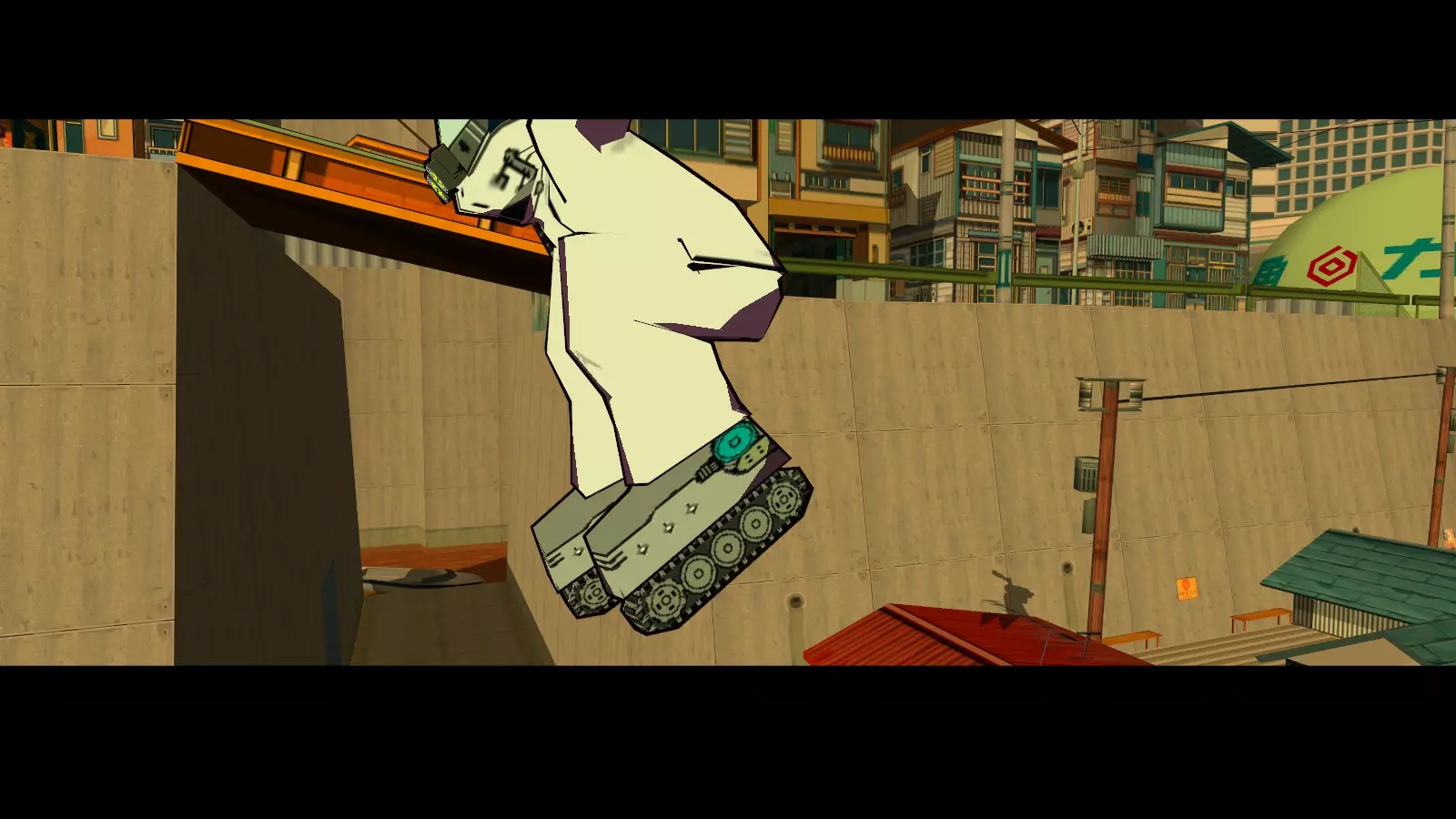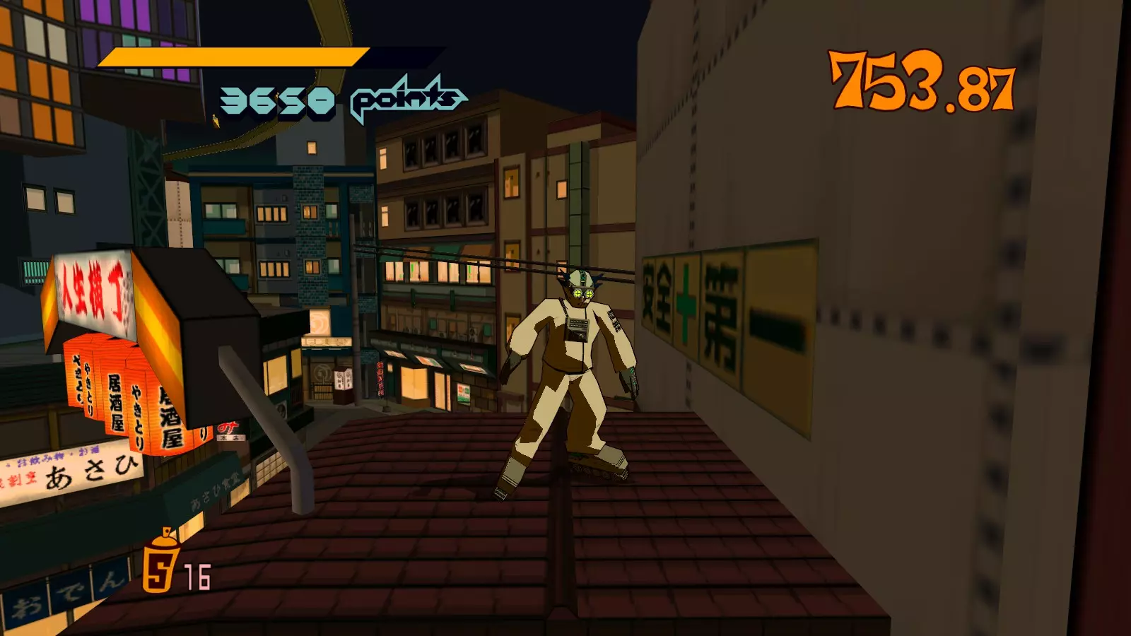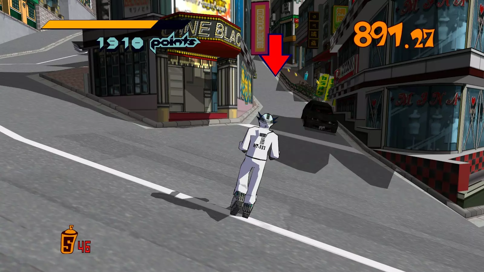 拿到屋顶上的大型涂鸦喷罐后,继续绕圈并跳到街道上。你要寻找一排黄色罐子,它们会引导你进入墙上的楼梯。沿着楼梯向上,就能到达顶部的大型涂鸦喷罐。