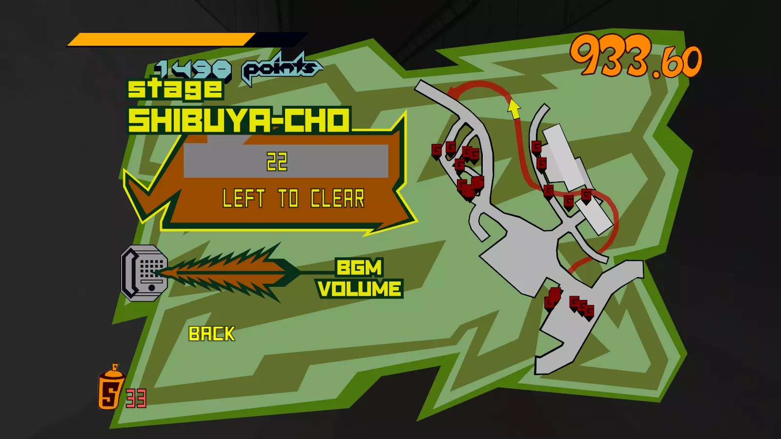 总体成就常见问题 本部分旨在提供有关成就的快速信息以及可能导致失败的因素。 常见问题: “锁定”指的是警察或黄金犀牛的手下跳向你并抓住玩家的情况。 你可以承受所有伤害,但由于有猜测认为撞到警长或受到火焰伤害会被算作锁定,因此尽量避免所有伤害(坠落伤害除外)。根据我的个人经验,被点燃并未阻止我获得成就。 你必须在新的故事存档中完成此成就。 由于对手(我个人认为)也被视为“首次尝试”的一部分,因此除了组合和立方体的对手挑战外,跳过其他所有对手挑战。我在除组合和立方体外未招募任何其他成员的情况下获得了该成就。这个成就不仅仅是要求在不被抓住的情况下完成关卡,【必须在首次尝试关卡时完成】。 从游戏内菜单退出游戏,无论是否被抓住,都会影响该成就,并使其无法被判定为“首次尝试”。不过,你可以通过任务管理器强制结束游戏,这样仍然会被计入(本人已测试)。 2025年1月20日更新:你可以返回车库(基地)并再次尝试。关闭游戏仍然是确保成就有效的可靠方法,并且在你被抓住时随时可以这样做,但如果你直接返回基地,就可以再次尝试任务。首次尝试关卡时可能不需要使用挂钩,或者首次完成关卡必须在不使用挂钩的情况下进行,但为了安全起见,谨慎一些总没错。感谢Androt提供此信息。 使用拥有良好喷漆罐容量和已记住涂鸦图案的角色对于完成此成就至关重要。 不建议在尝试此成就的同时追求其他成就。要么尝试【Detached】成就,要么尝试【All Jet】成就,不要同时进行。 尝试此成就时,分数并不重要:花时间专注完成此成就,而不是急于通关,但要确保首次尝试在规定时间限制内完成。 喷涂大型或超大型涂鸦时,按下【涂鸦按钮】可以中断喷涂过程。如果被敌人追赶且他们试图抓住你,请记住这一点。 只标记红色箭头。不要特意去标记绿色箭头。 对于那些不想了解完成地图正确方法的人,FAQ的最后一句话: 尽管“速度”并不重要,但静止不动是极其致命的。你需要先完成“大型”和“超大型”涂鸦。这样你就能在不被抓住的情况下逃离关卡中的暴徒。先完成较大的涂鸦,再喷涂小型涂鸦。 涩谷GG指南 这个关卡相当简单直接,不容易被抓住,但即使很简单,也必须采取预防措施。