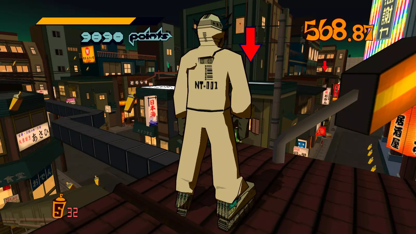 待在屋顶上时,移动到屋顶上的下一处涂鸦。这就是我们在完成大型涂鸦后,进行小型涂鸦的地方。