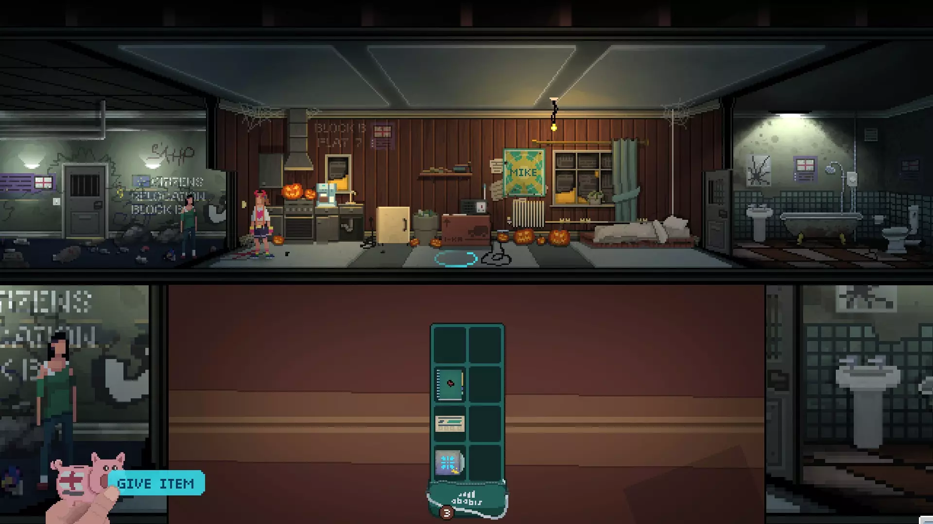 步骤2:在第二章中,当米尔娜在周日来访时,将你手中的存钱罐放到她的手上。