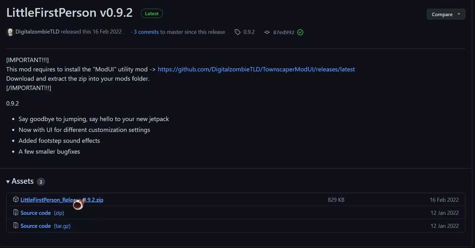 该模组(LittleFirstPerson)+ 其他一些确保其运行的文件(ModUI) 1. 首先是模组本身。下载该文件(LittleFirstPerson_Release_0.9.2.zip),并使用WinRAR(或其他解压软件)将其解压到mods文件夹中。