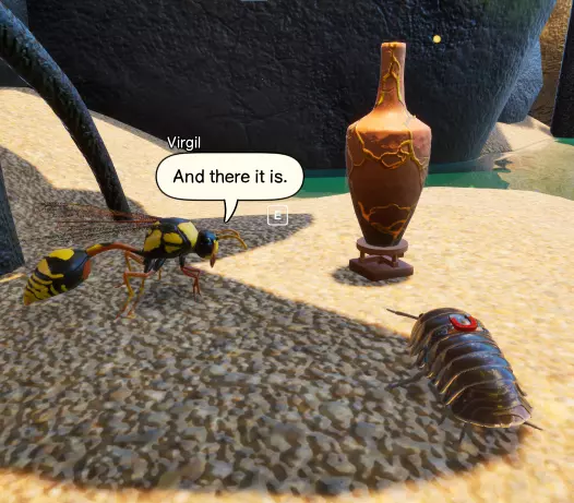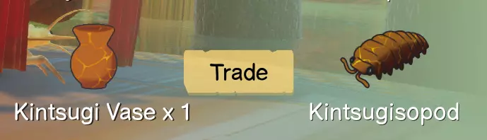 金缮花瓶是一个任务收集品,由维吉尔在你交给她100个陶罐碎片后奖励。维吉尔位于红树林区域接近终点处你左侧的一棵红树林树苗下方。陶罐几乎遍布地图各处,每个陶罐可获得1个陶罐碎片(至少我认为是这样,可能我记错了)。上交陶罐碎片后将解锁【金缮鼠妇】皮肤。