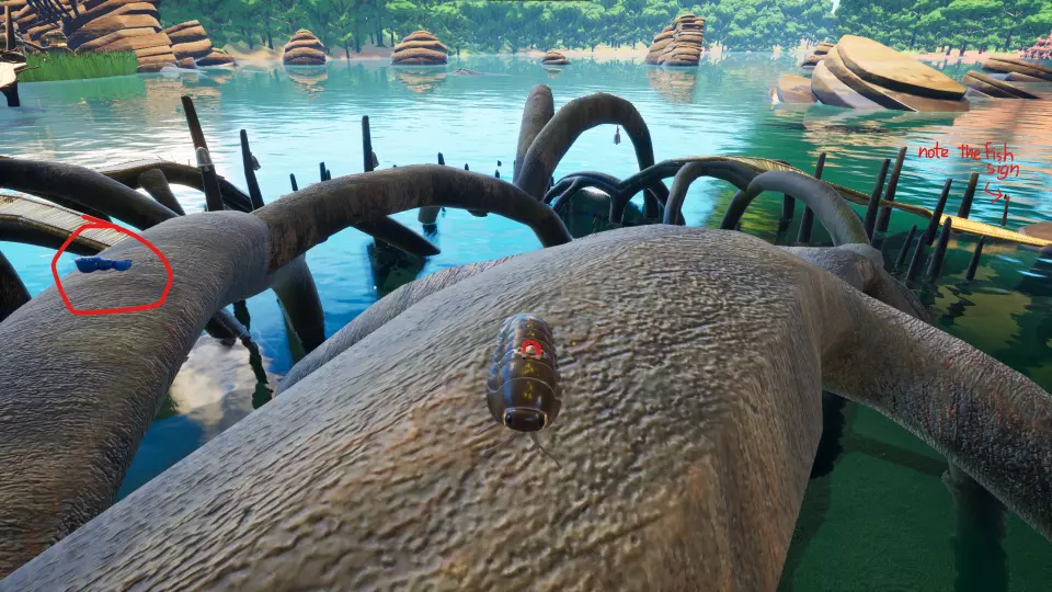 小龙虾尾巴可在红树林区域的尽头、一根红树林树根顶部找到,以鱼形路标作为其位置标记。上交小龙虾尾巴可解锁小龙虾皮肤。