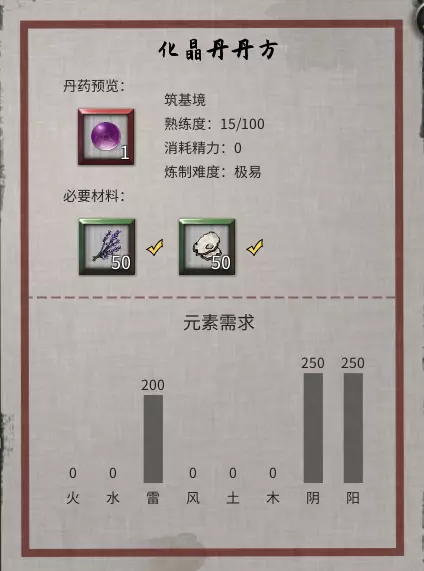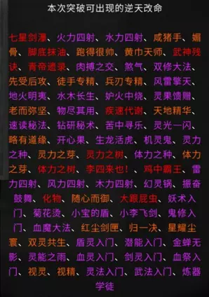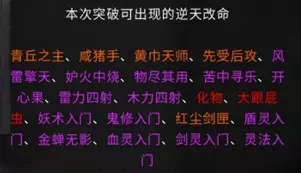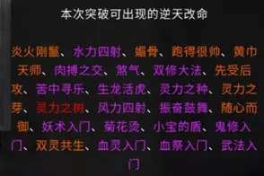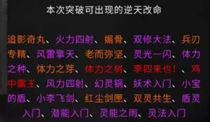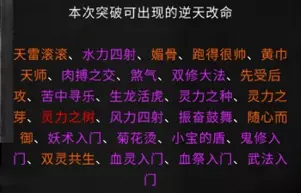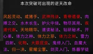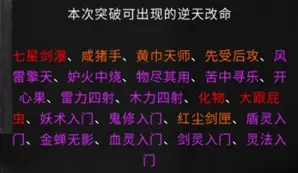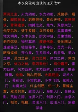 游戏相关资料收录 各境界突破流程 逆天改命与效果 炼器系统,法宝 仙法 道心 前言 游戏版本:v0.8.6015.259 这是我的第二份攻略,第一份攻略由于某些原因已不能观看。敬请谅解。 由于个人能力有限,如有错误请及时通知以尽快修改。目前游戏仍属于开发阶段,其中不排除在未来更新存在大量修改。 通知: 我没有包含英文翻译的计划。但这一决定并非绝对。希望如果没人做的话,我也能加入英文翻译,但这会是一个新帖子,而不是合并到本指南里。感谢阅读。 游戏玩法 个人认为是一款半开放世界型的修仙类游戏。游戏主要注重在提升修仙境界上,总共可以划分为十道境界。每道境界又划分为前期、中期和后期。玩家在游戏里主要就是寻找提升境界所需要的材料。下面也会讲解如何取得每个境界所需的材料。当然除了这些还有其他玩法,比如说各种奇遇,研究各种功法流派,炼丹还有其他玩法(比如炼妖芦、画符箓、门派等)官方正在积极开发当中。修仙境界: 炼气境 筑基境 结晶境 金丹境 具灵境 元婴境 化神境 悟道境 羽化境 登仙境 游戏难度目前版本分为5个等级,分别是普通、困难、极难、地狱、洪荒。游戏难度由各位自行体验。