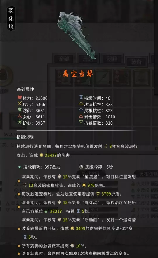 离尘古琴所需材料:核心材料:阴曲琴 获取方法:击杀赤幽州中的幻幽梼杌后获得