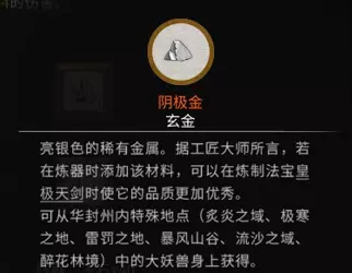 稀有材料:阴极金×10 获取方法:击杀华封州内的大妖兽获得