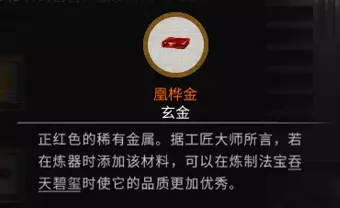 稀有材料:赤玄金 x10 获取方法:击杀赤幽州内的大妖兽获得