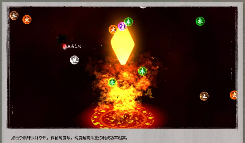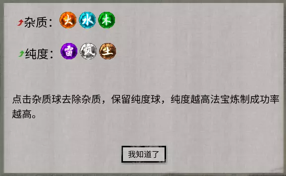 自己炼制:可加入稀有材料与炼器真火,之后还能通过剔除杂质来提升法宝品质。