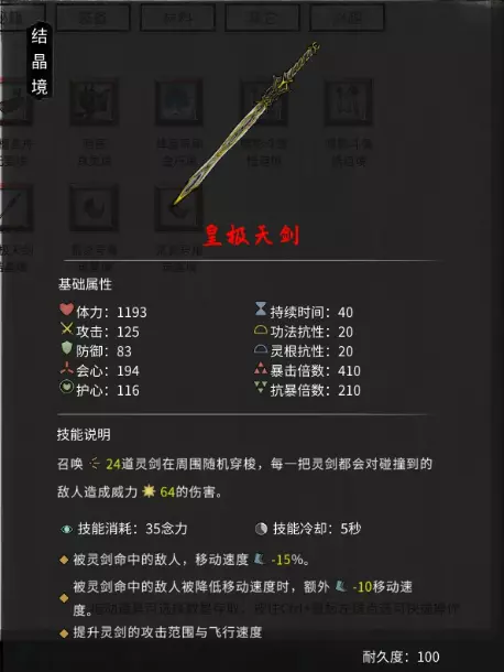 皇极天剑所需材料:核心材料:星硫铁 获取方法:在陨幽谷中开启最后的紫水晶时,有几率刷出大妖兽,击倒后可获得该材料。