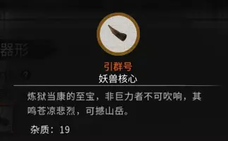 图为噬影斗篷的所需杂质球和纯度球,根据炼制的法宝会有所不同。 炼制材料:从以上图片可看到炼器需要的材料分为核心材料、辅助材料、稀有材料和炼器真火。 核心材料:通过击杀对应法宝的大妖兽王获得。 辅助材料:通过击杀普通怪物,或者陨幽谷之类的地方获得。 稀有材料:每个法宝有对应的稀有材料,获得方式根据法宝而有所不同。主要需要玩家击杀每月刷新的各种大妖兽来获得。目前看来材料是随机掉落,并不是特定大妖兽掉那个材料。 炼器真火:通过门派中的聚宝仙楼换取。 荒炎号角需要材料:核心材料:【引群号】 获取方法:击杀雷泽中的炼狱当康获得。