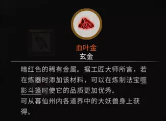 稀有材料:血叶金 x10 获取方法:击杀暮仙州内道界中的大妖兽获得,约会喂鱼也可获得