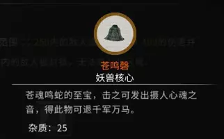 青冥玄钟所需材料:核心材料:苍鸣磬 获取方法:击杀十万大山的苍鸣魂蛇后获得
