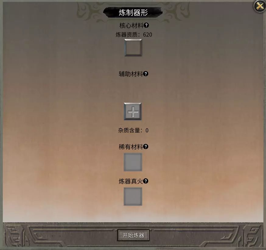 辅助材料:任意一种矿石,精华×50 炼器真火:通过宗门的聚宝仙楼换取 成品: