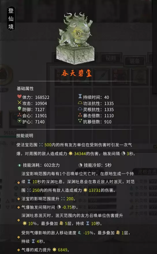 进入之后需要打败一只大妖兽。成功之后获得【蜃灵珠】。 【太初仙璃】之后使用【堪舆】找到一处灵气充沛的地点突破。
