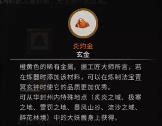稀有材料:炎灼金 x10 获取方法:击杀华封州内的大妖兽获得