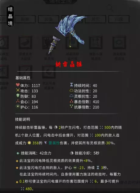 斩雷晶锤所需材料:核心材料:唤雷角 获取方法:击杀雷泽中的九霄雷神获得