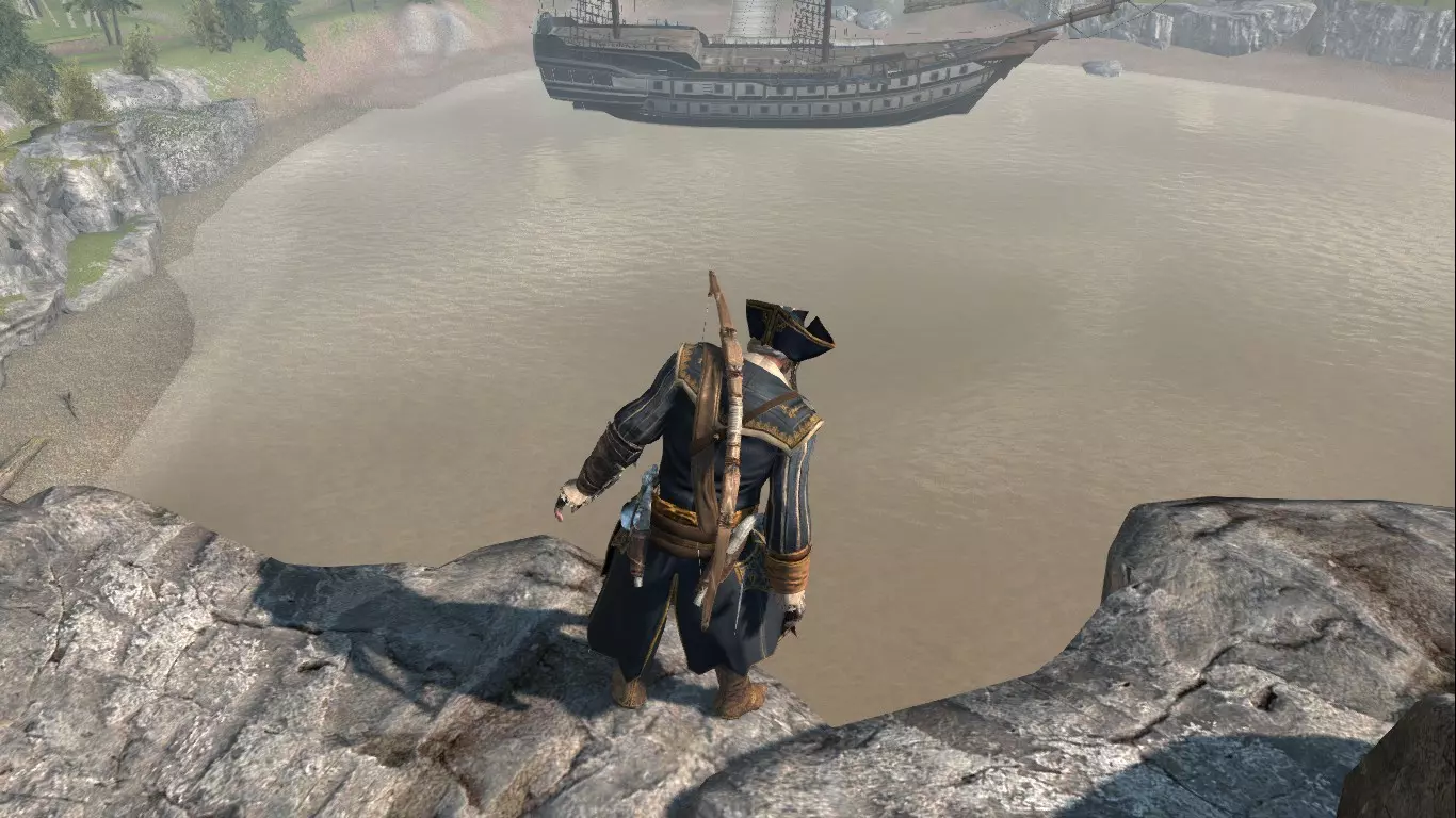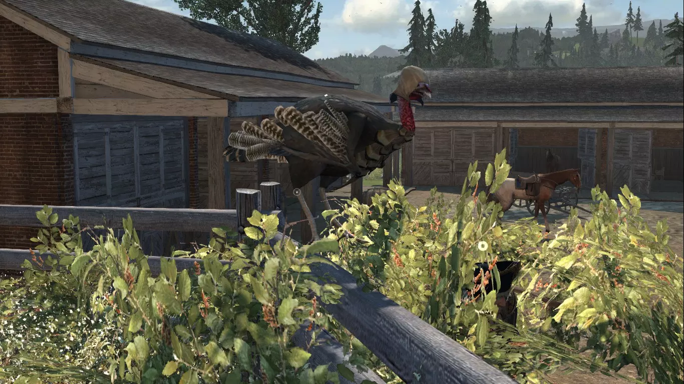我可不是在开玩笑哦;) 那么重点来了:怎么找到它呢?非常简单。收拾好东西前往庄园。在那里,靠近主宅,找个角落躲起来然后吹口哨。会有一只不知从哪冒出来的火鸡跑过来,开始咯咯叫,但看起来就是一只普通的火鸡。现在,站在它旁边,快速在键盘上输入以下组合:22441313E(空格)(确保你的键盘是标准布局),然后奇迹就会发生,康纳会用兜帽喂火鸡。在其他动物、其他城市以及普通火鸡身上都试过了——没用!只有在庄园才有效。哦,这该死的阿喀琉斯! 放松的熊。